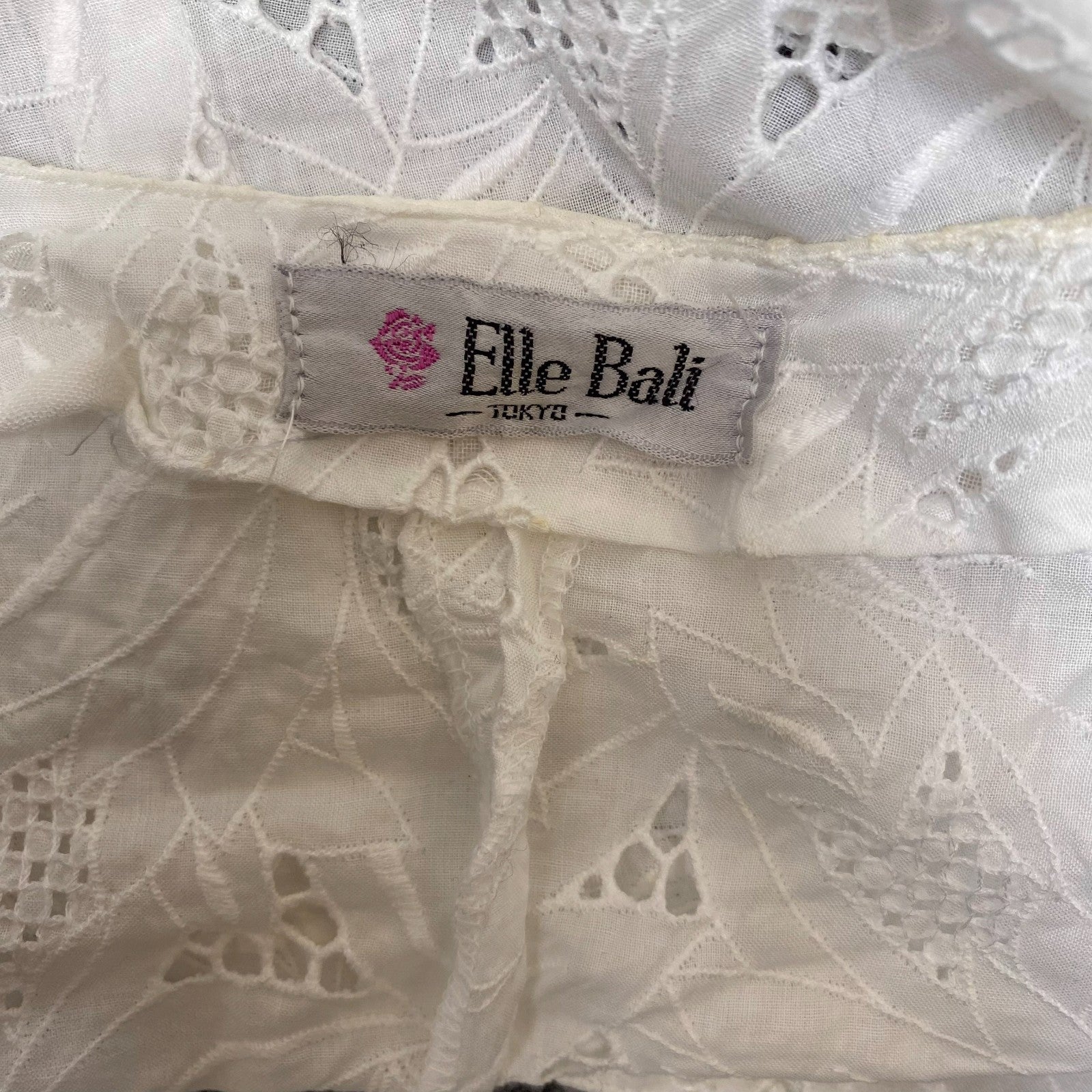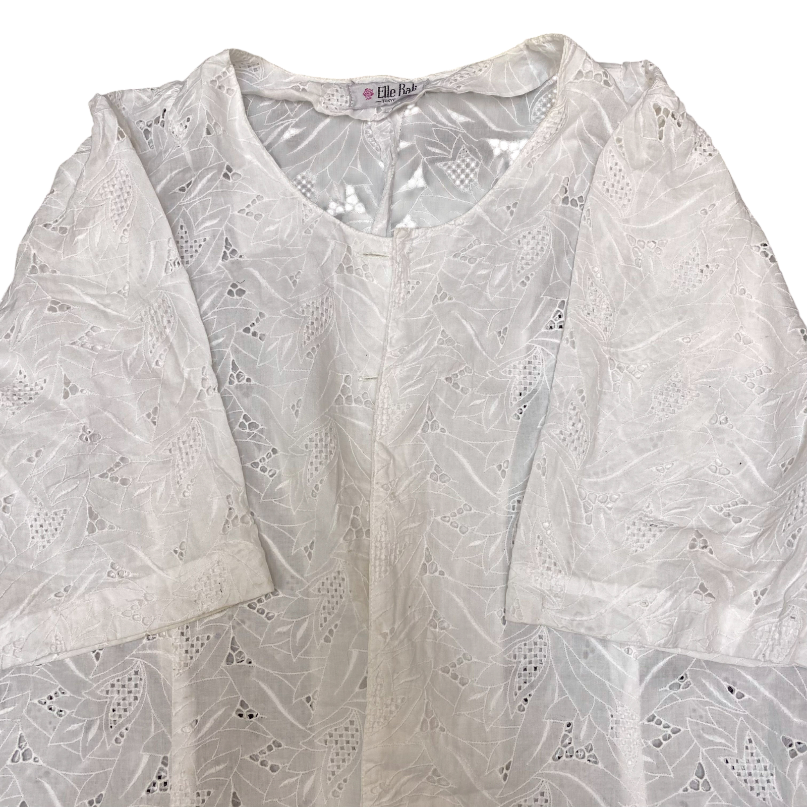 Blouse Top Womens M White Eyelet Floral Casual 3/4 Sleeve Round Neck Scallop Hem