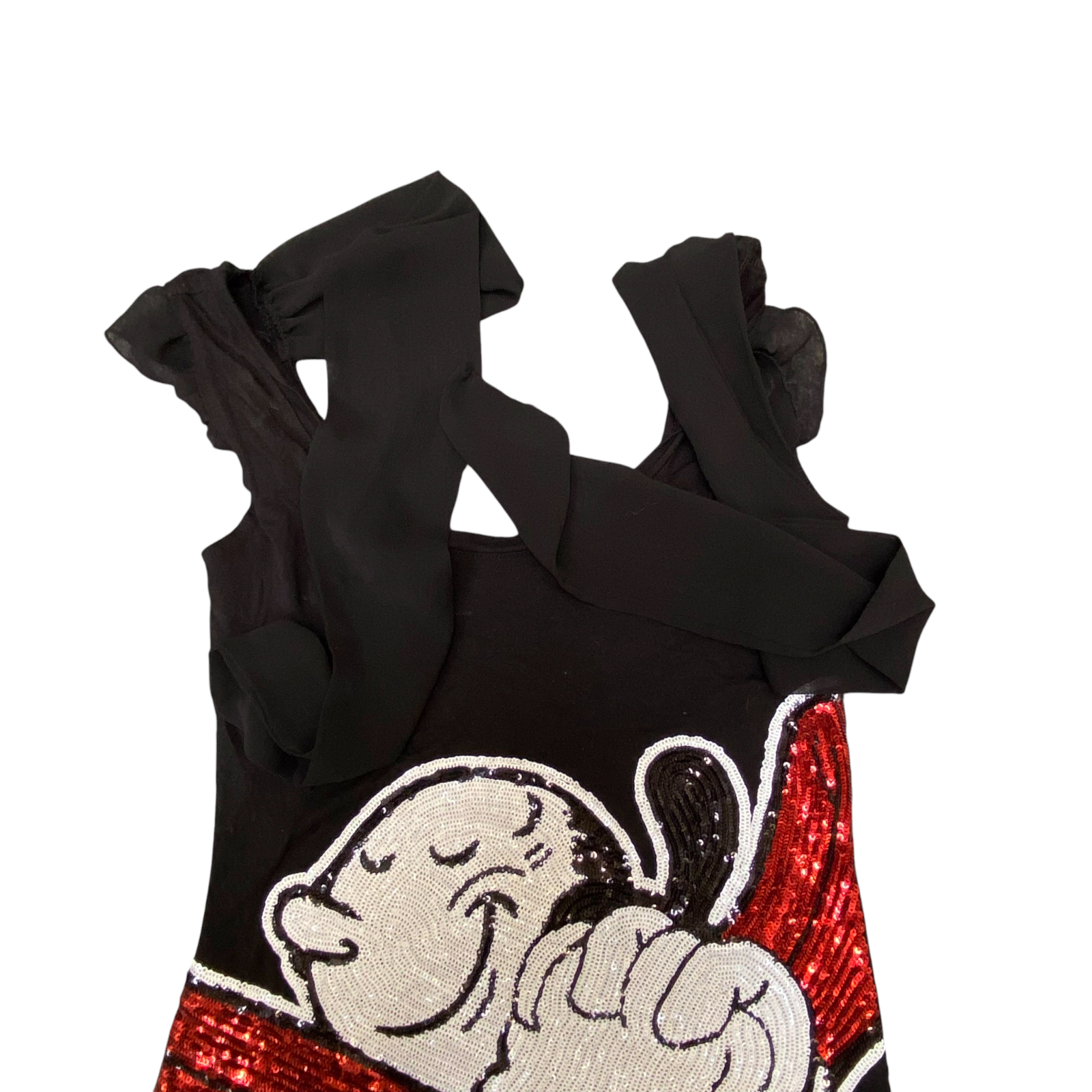 Blouse Top Womens S Black Swee Pea Popeye Sequins Sleeveless Pullover Outdoor