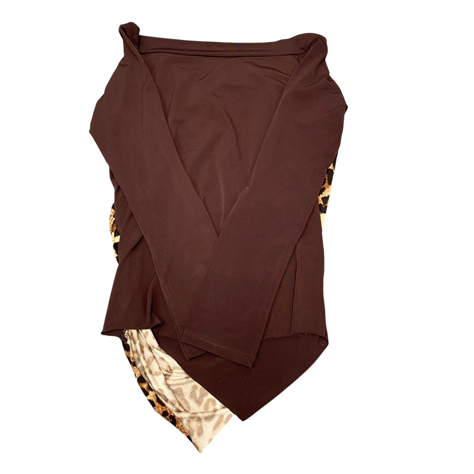 Blouse Top Womens S Brown Leopard Print Long Sleeve Asymmetrical Hem Pullover