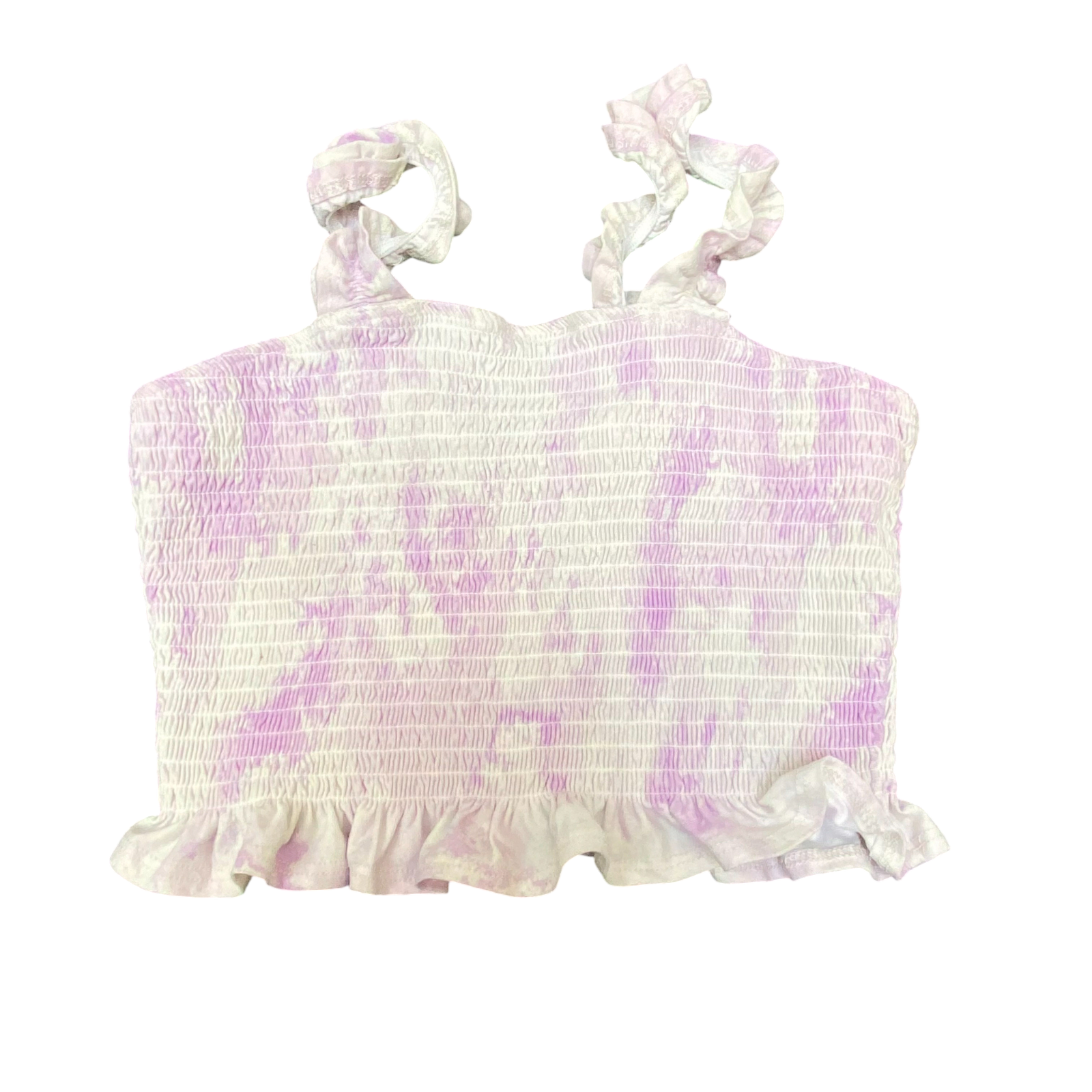 Blouse Top Womens S Purple White Tie Dye Smocked Cropped Ruffle Straps Pullover