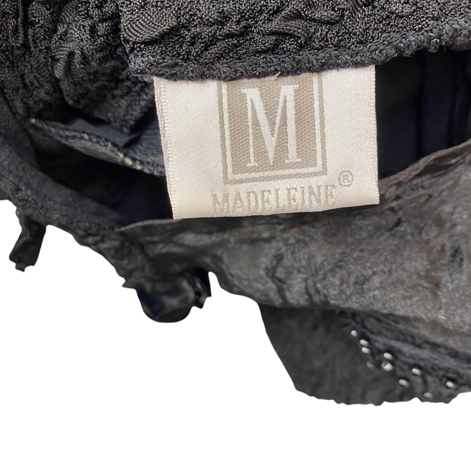 Bodysuit Womens S Black Textured Puffy Long Sleeve Beaded V-Neck Back Zip