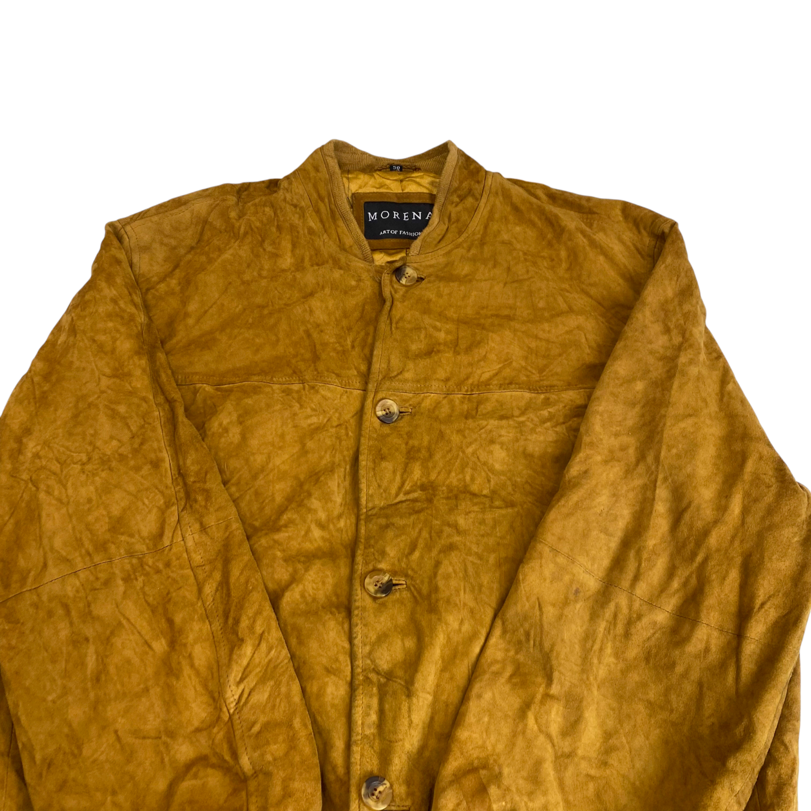 Bomber Jacket Mens L Brown Suede Leather Long Sleeve Button Front Outdoor