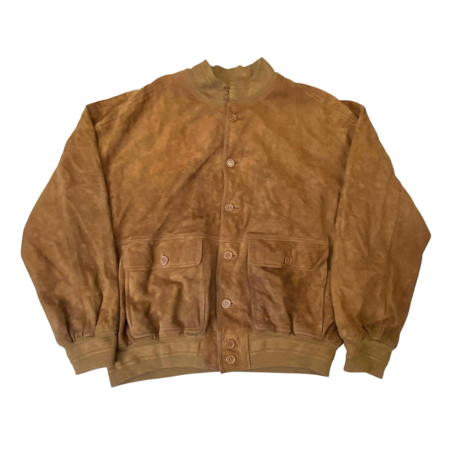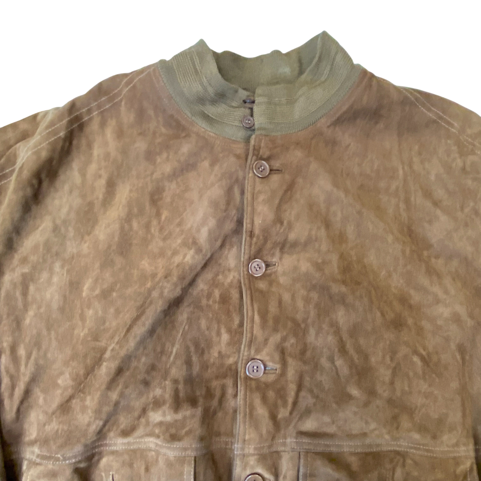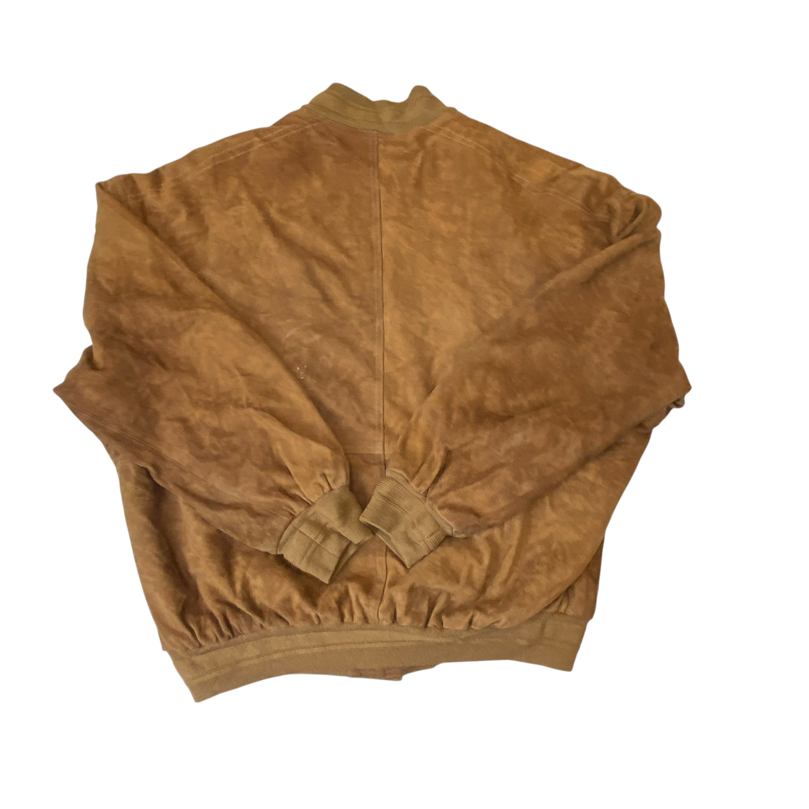 Bomber Jacket Mens XL Brown Suede Leather Pockets Long Sleeve Button Front