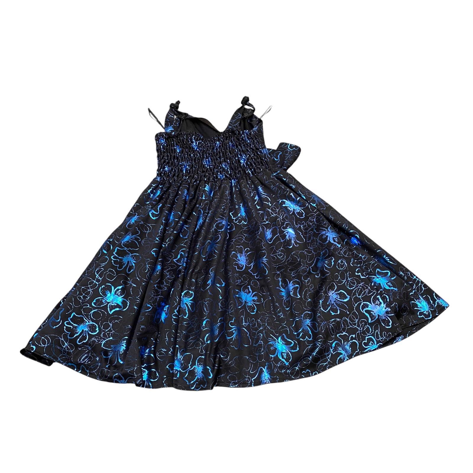 C&A Short Dress Womens S Black Floral Smocked Back Pleated Sleeveless Comfy