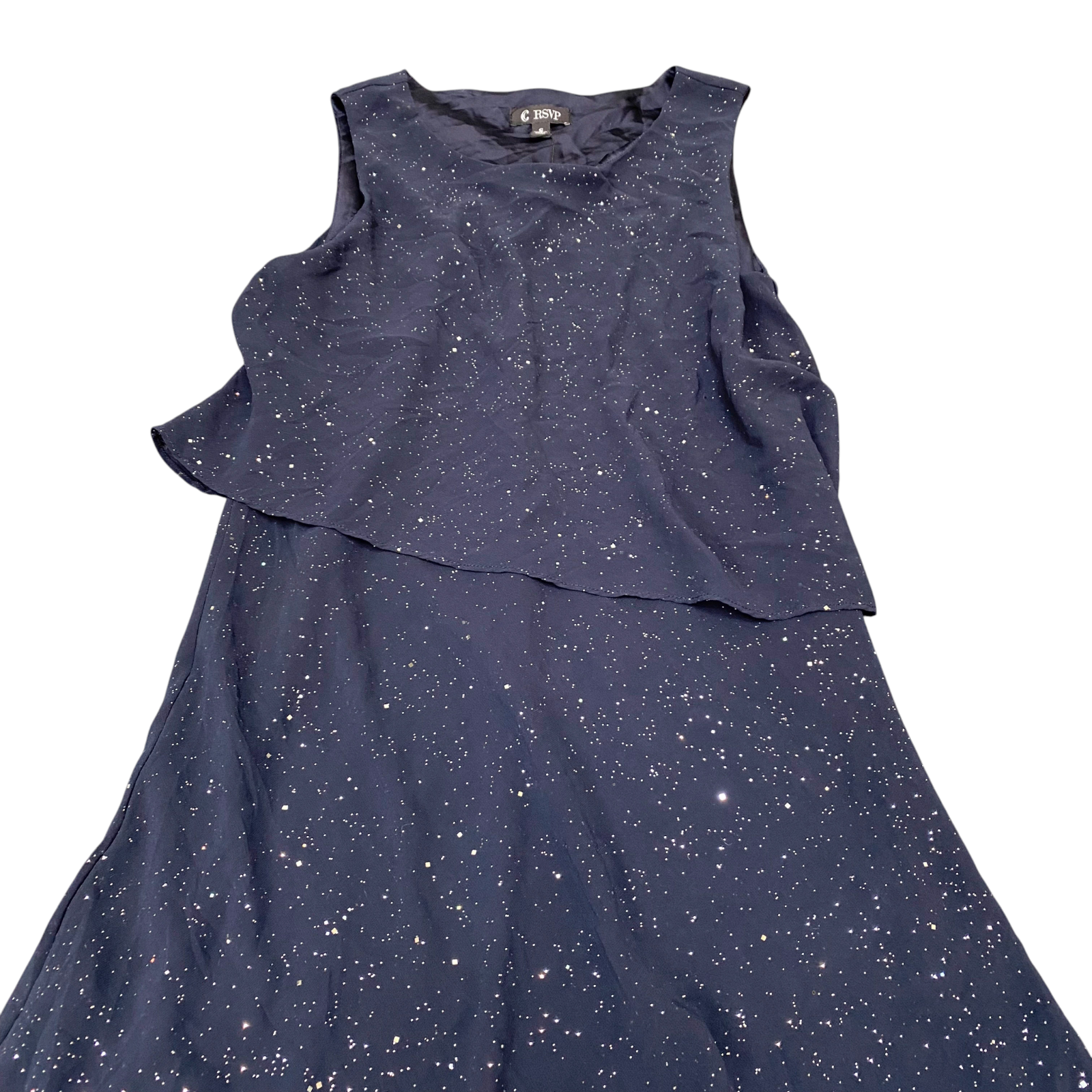 C RSVP Cocktail Dress Womens S Blue Sequin Sleeveless Asymmetrical Hem Pullover
