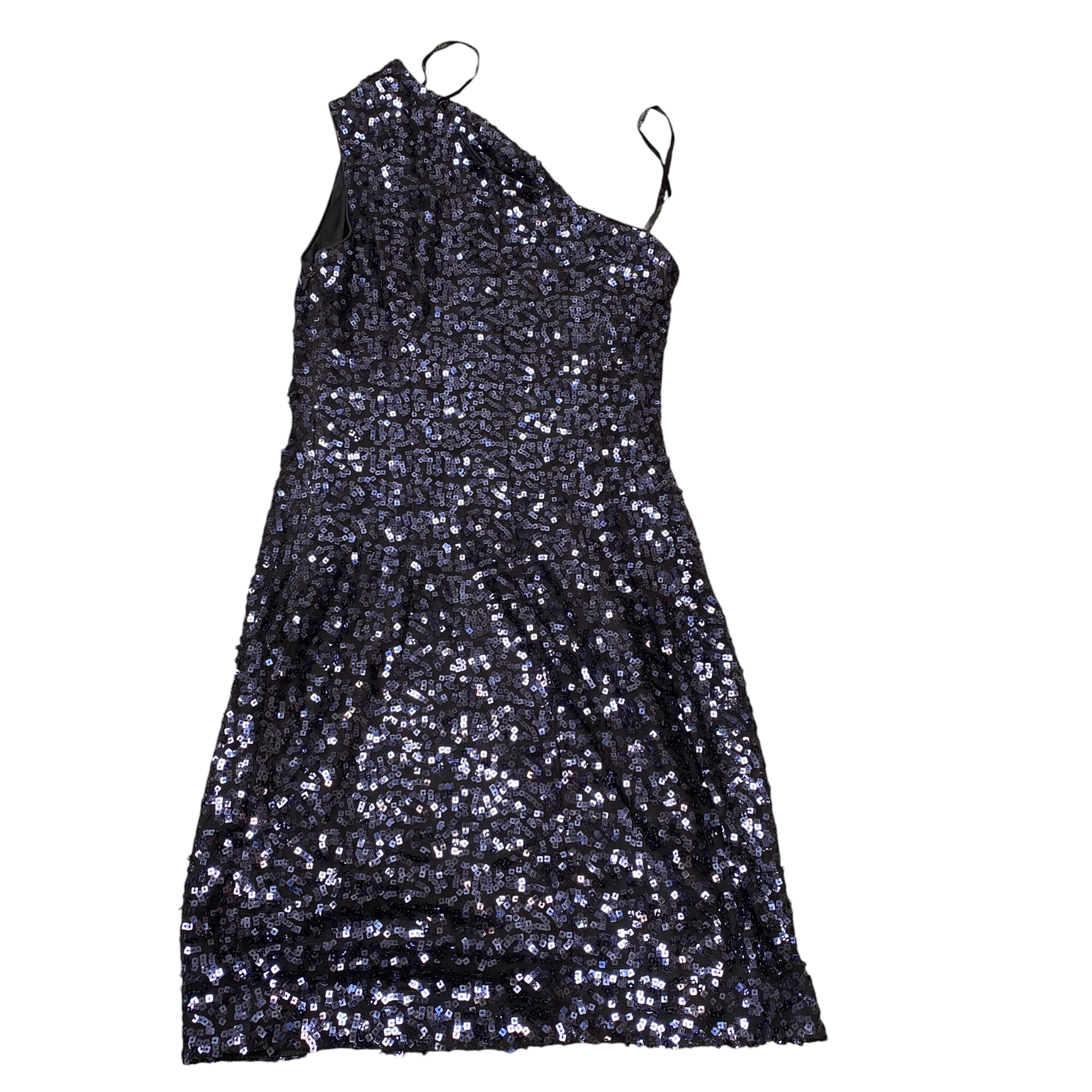 Calvin Klein Sheath Cocktail Dress Womens S Black Overall Sequins One Shoulder
