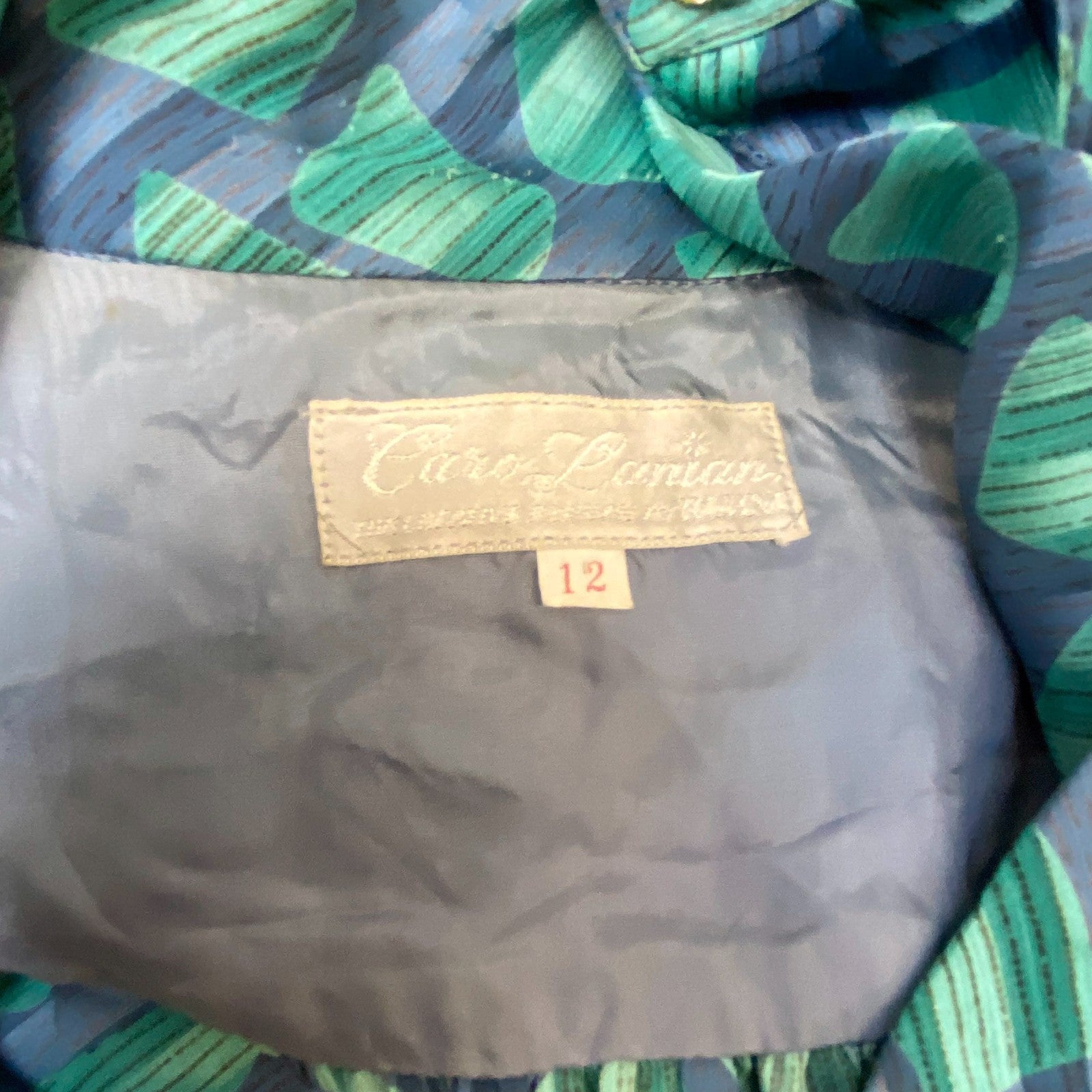 Caro Lanian A Line Dress Womens L Green Blue Geometric Pleated Button Front