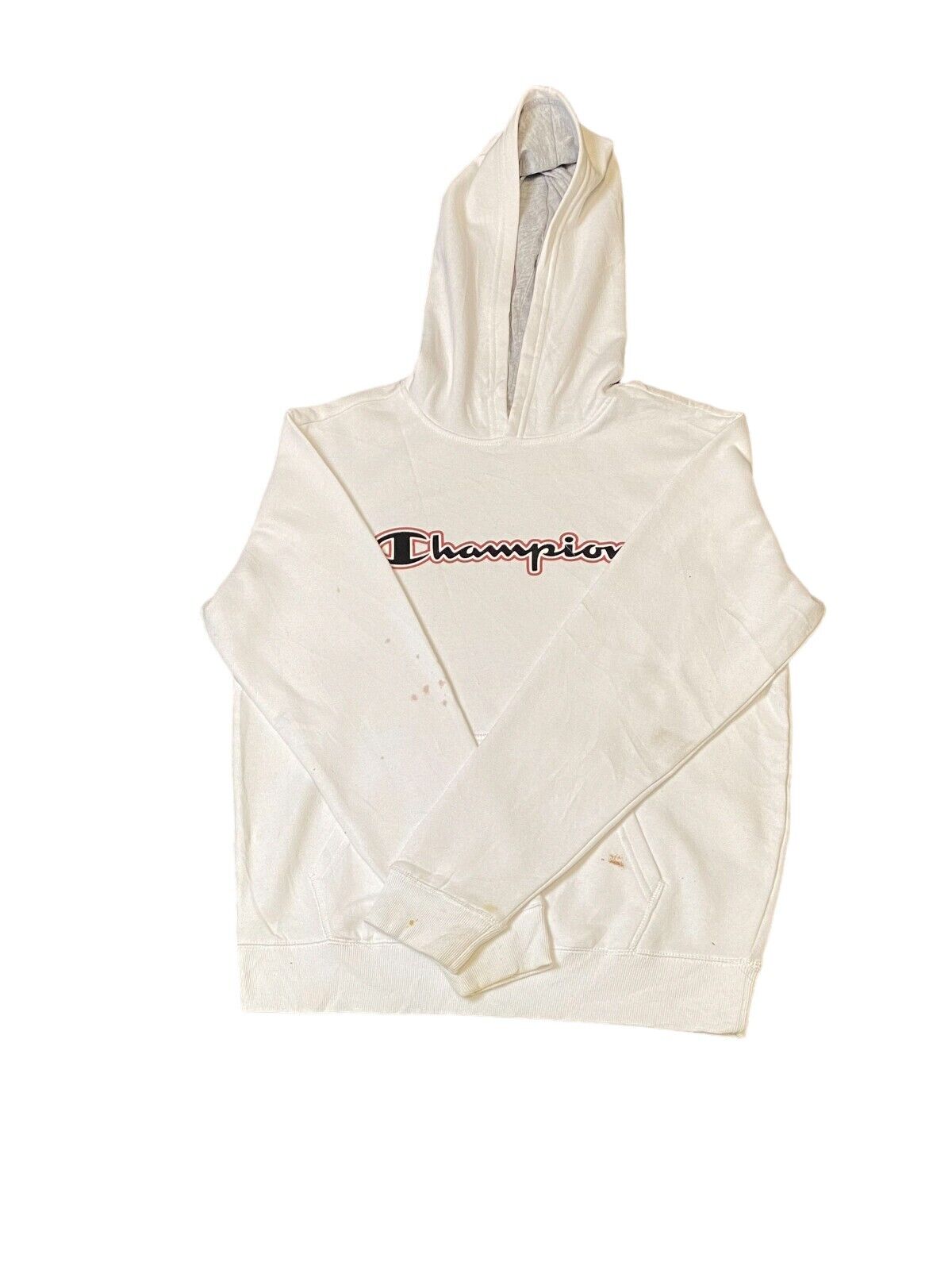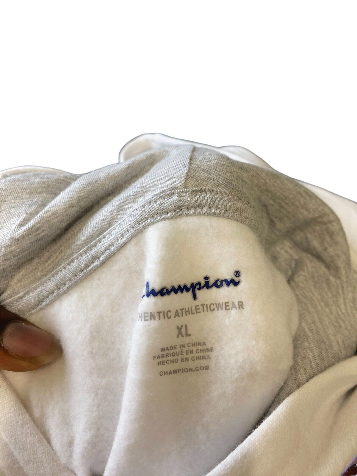 Champion Athleticwear Hoodie Men's XL White Spell Out Logo Drawstring Pullover