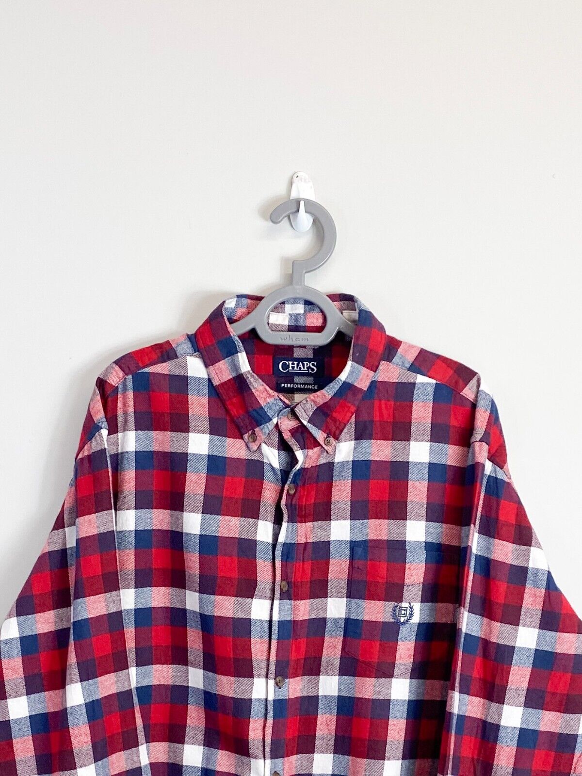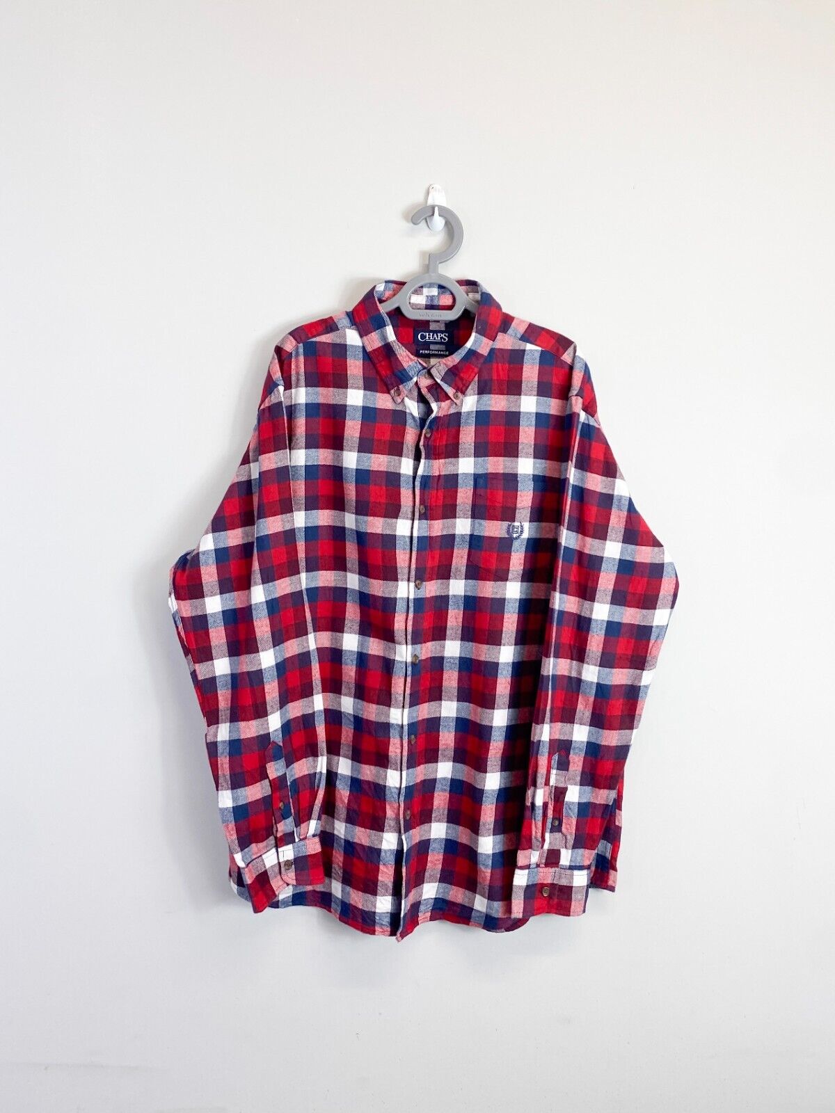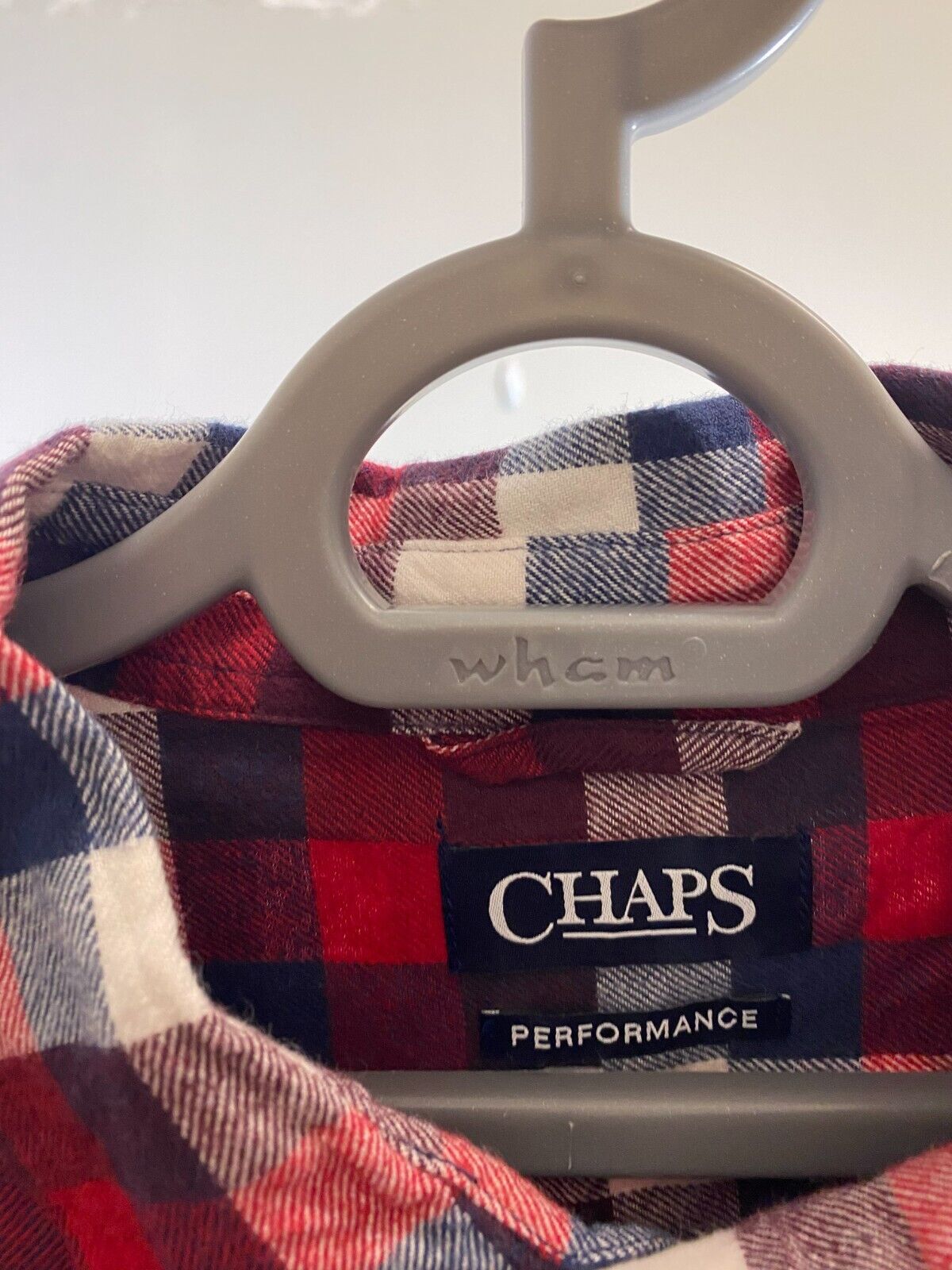 Chaps Shirt Men Large Red Checkered Performance Long Sleeve Collared Button Down