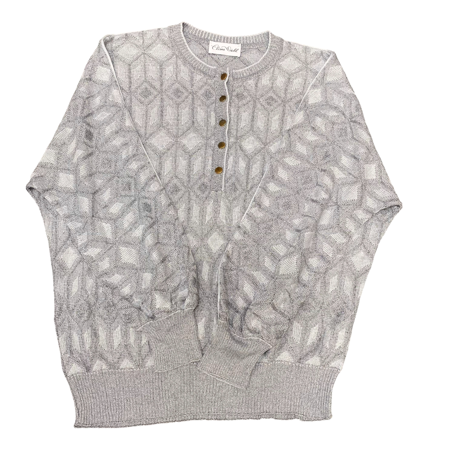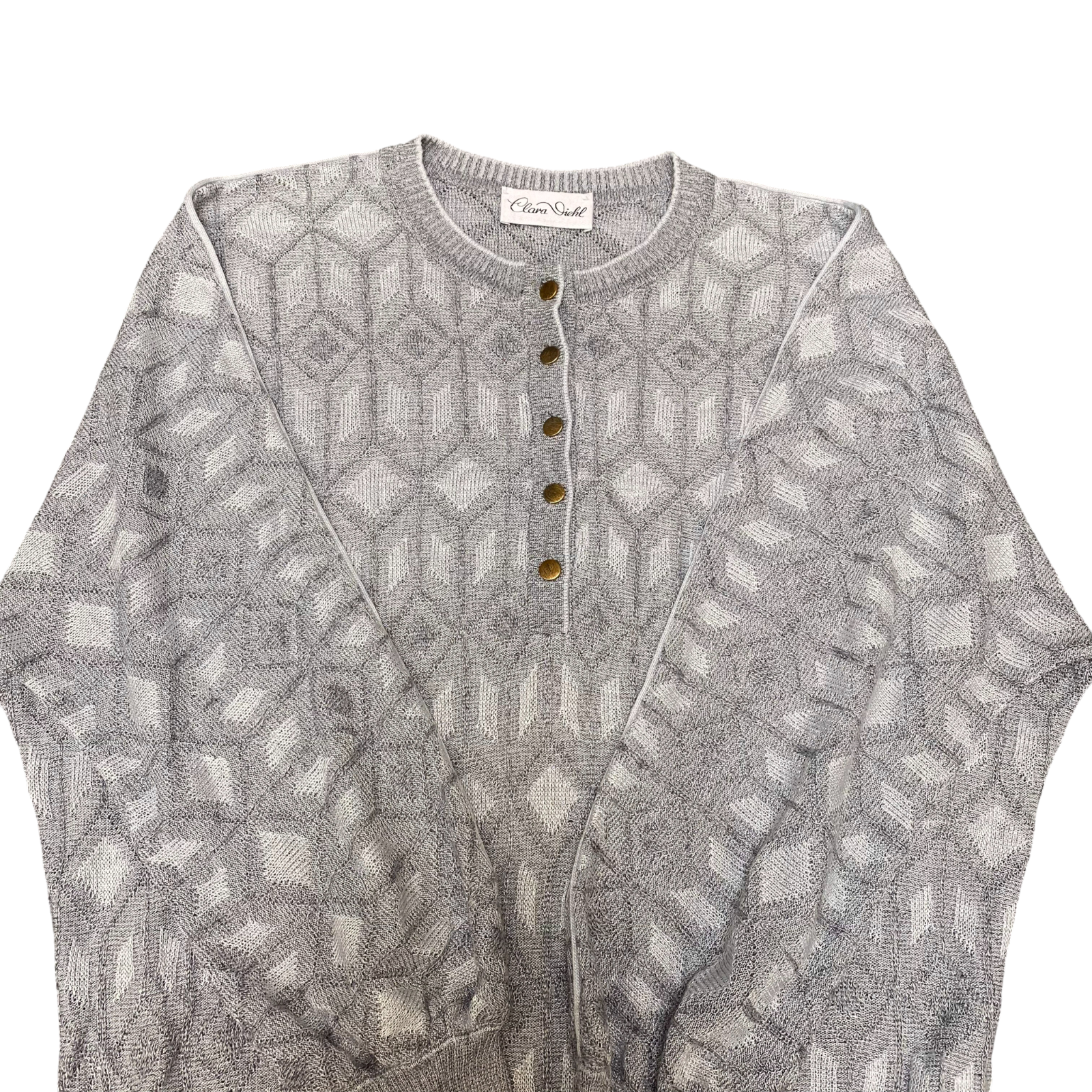 Clara Viehl Jumper Womens Large Grey Knitted Long Sleeve Crew Neck 1/4 Button