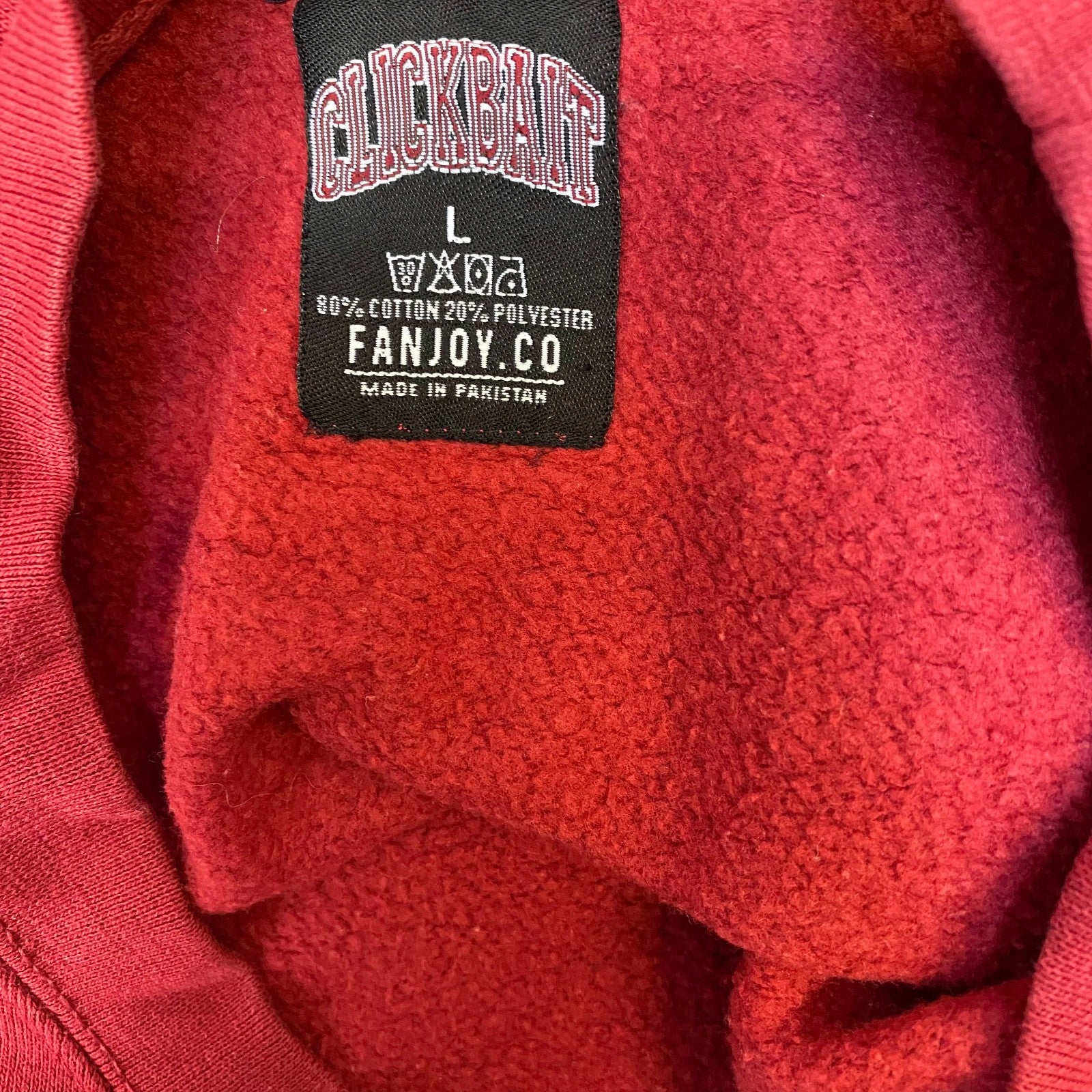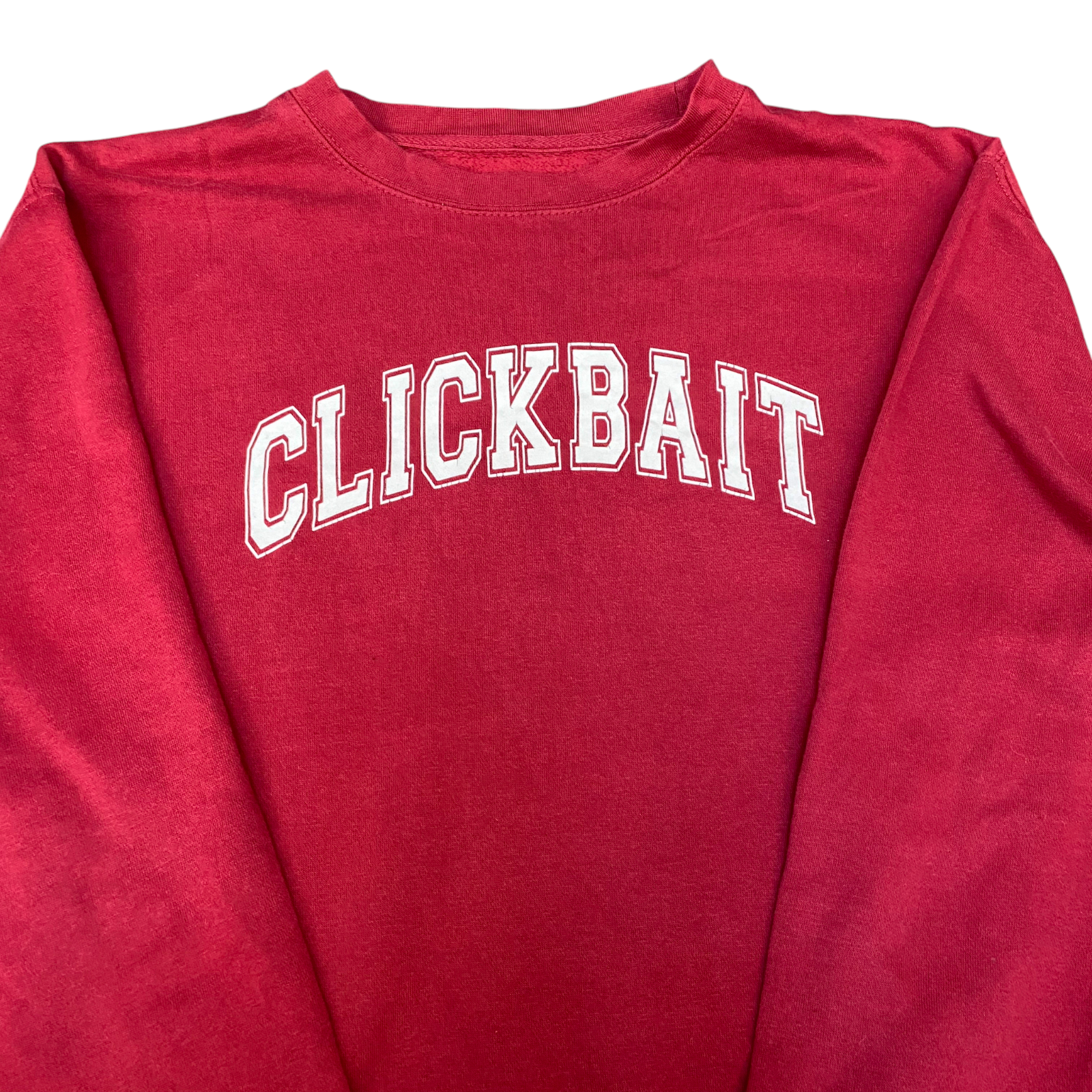 Clickbait Sweatshirt Womens Large Red Graphic Spellout Long Sleeve Crew Neck