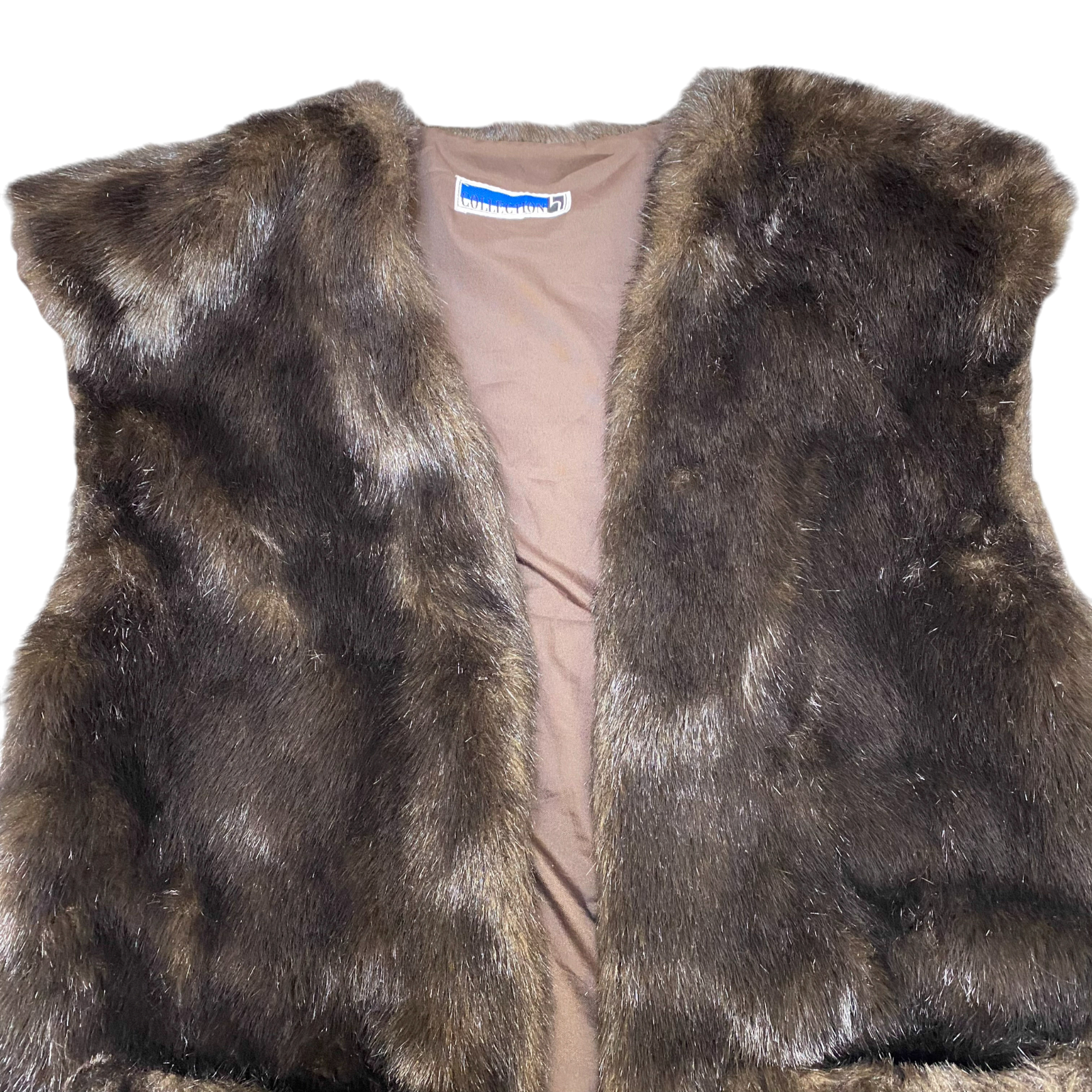 Collection Faux Fur Vest Womens Large Brown Lined Pockets Sleeveless Open Front