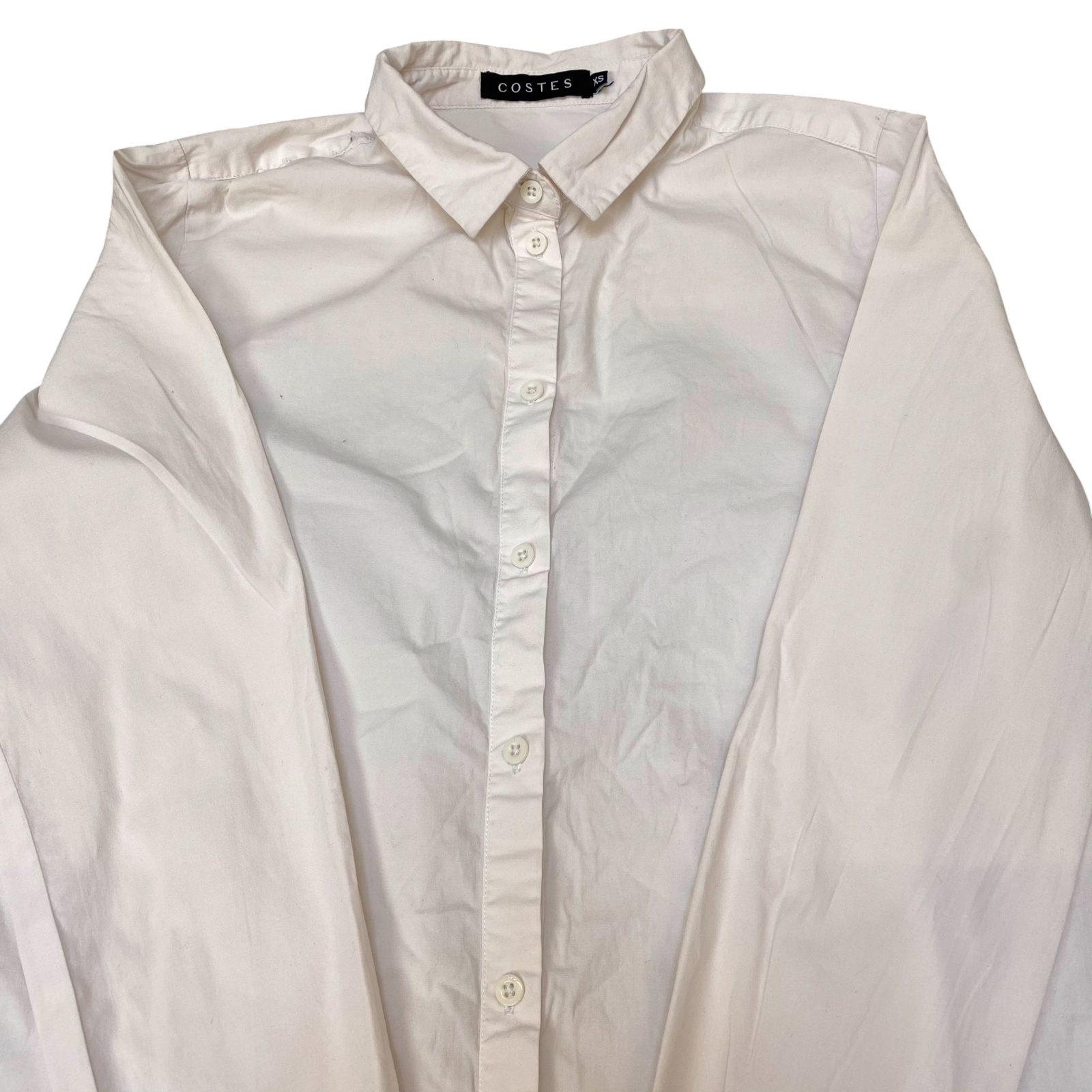 Costes Shirt Top Womens M White Solid High Low Long Sleeve Button Front Comfy