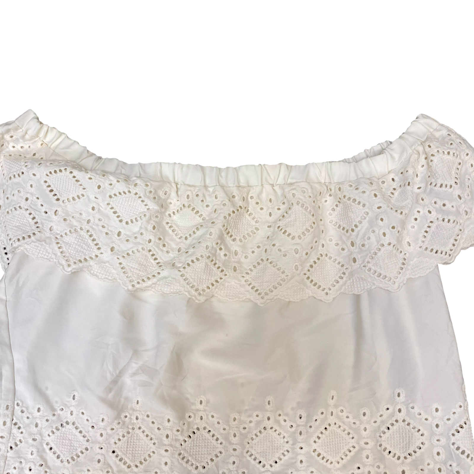 Cropped Blouse Top Womens M White Eyelet Off Shoulder Casual Pullover Outdoor