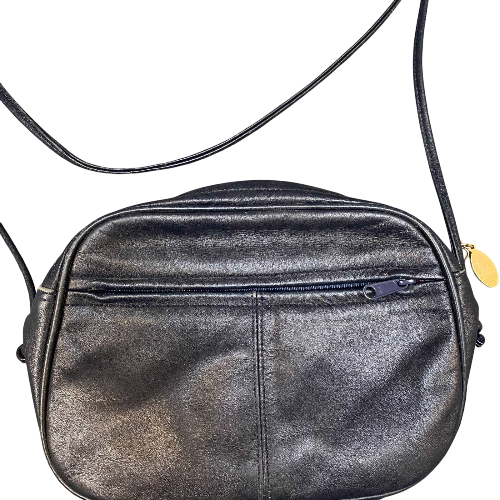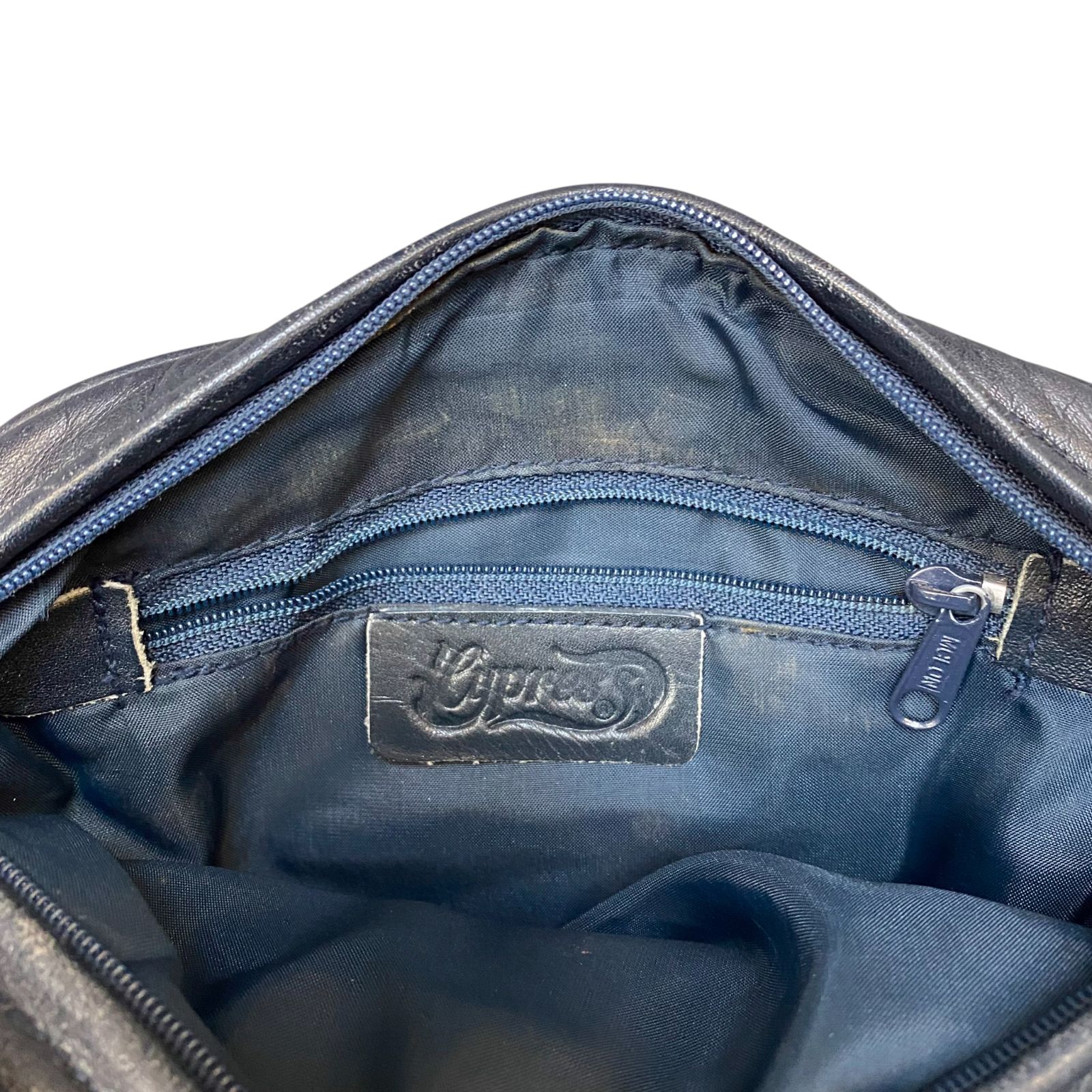 Cypress Crossbody Bag Womens Navy Blue Leather Adjustable Strap Zip Closure