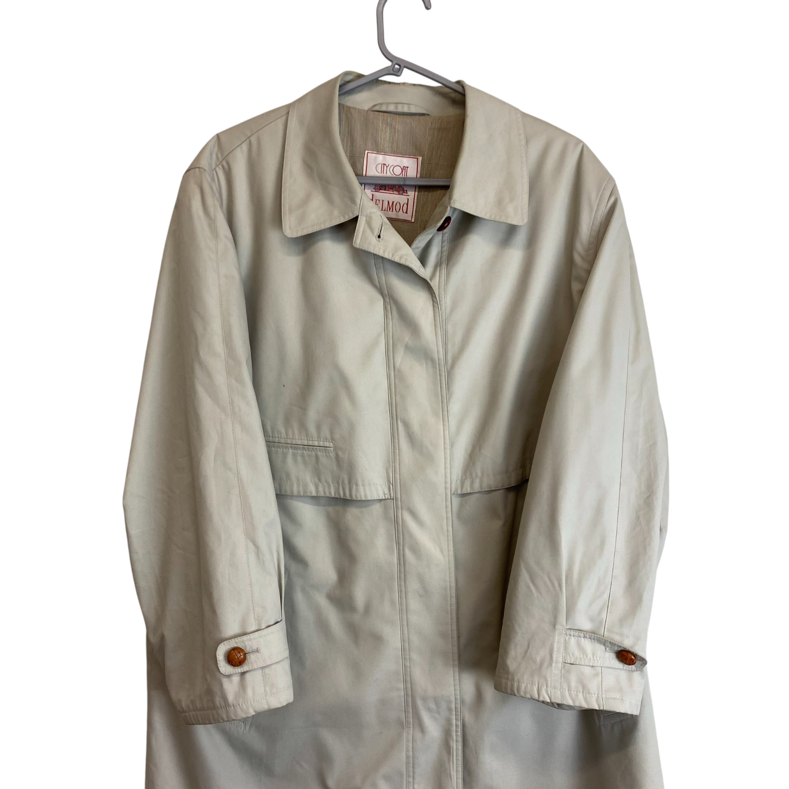 Delmod Trench Coat Womens XL Cream Vented Long Sleeve Collared Button Front