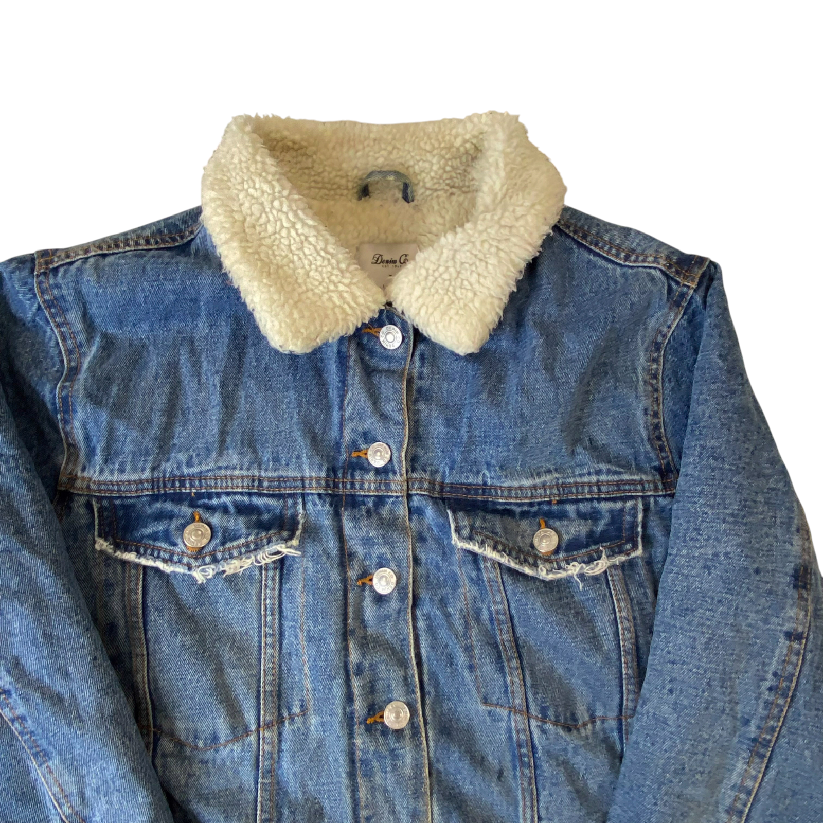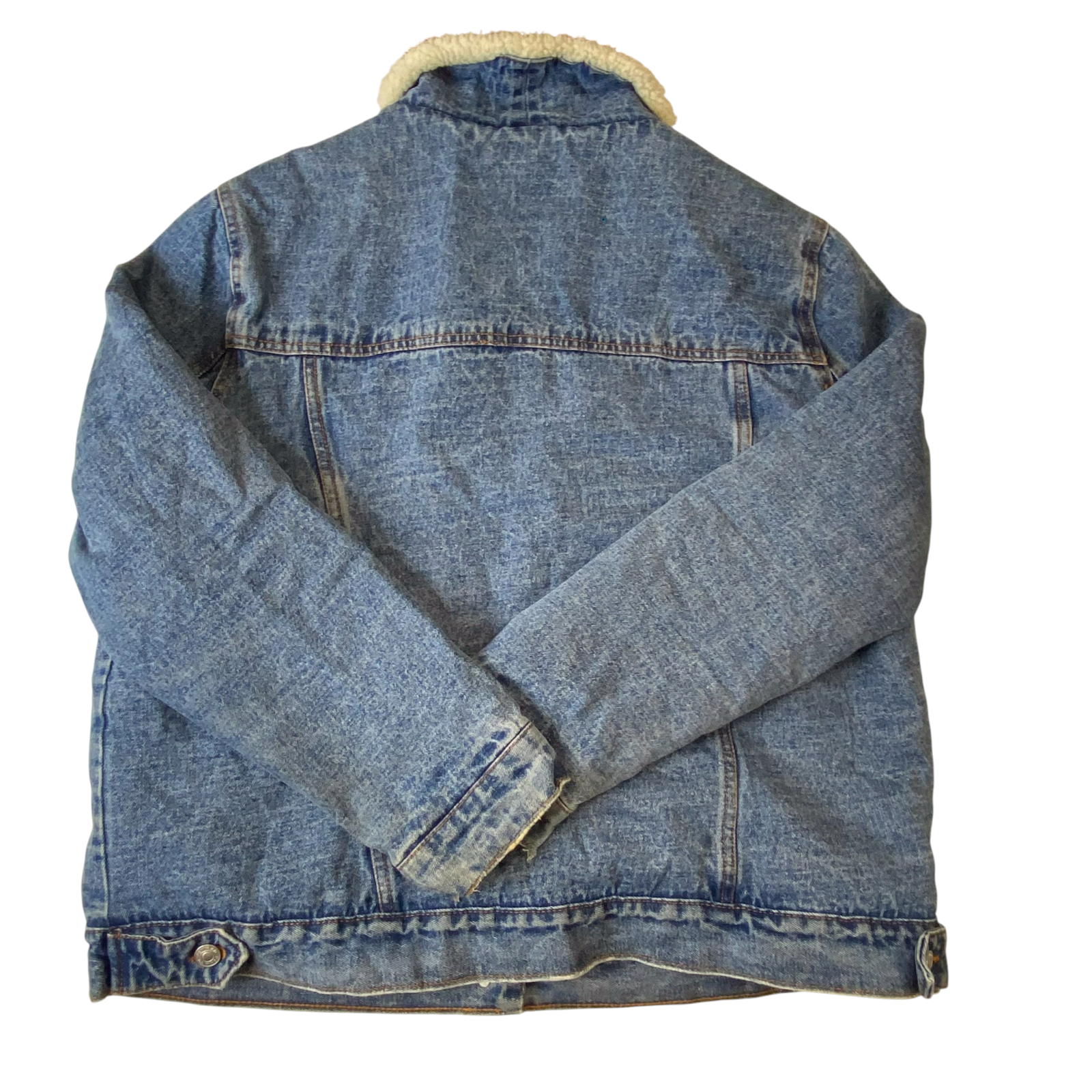 Denim & Co. Trucker Jacket Womens L Blue Cozy Sherpa Lined Collared Button Up