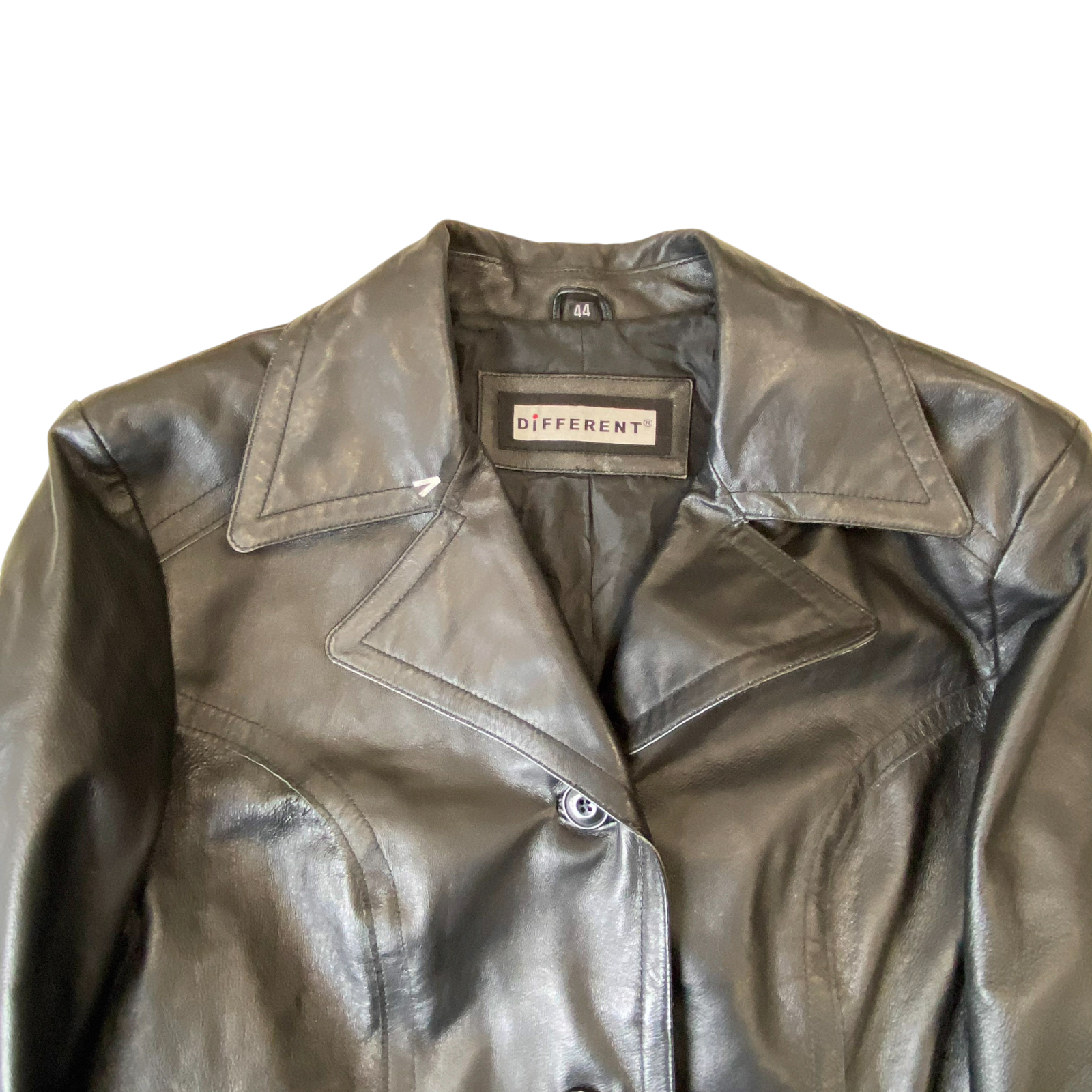 Different Leather Blazer Jacket Womens Medium Black Notch Lapel Single Breasted
