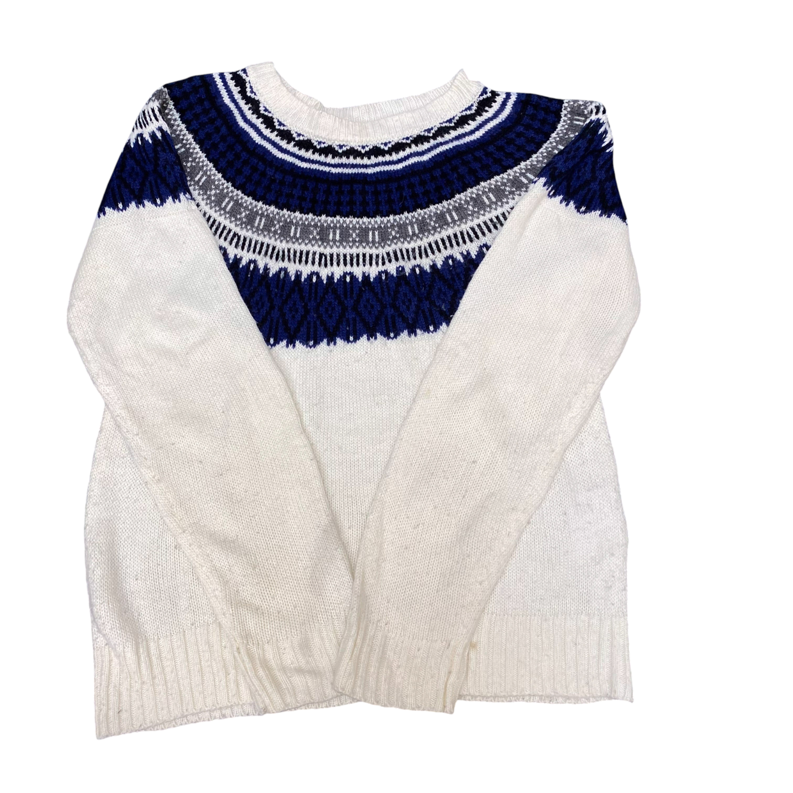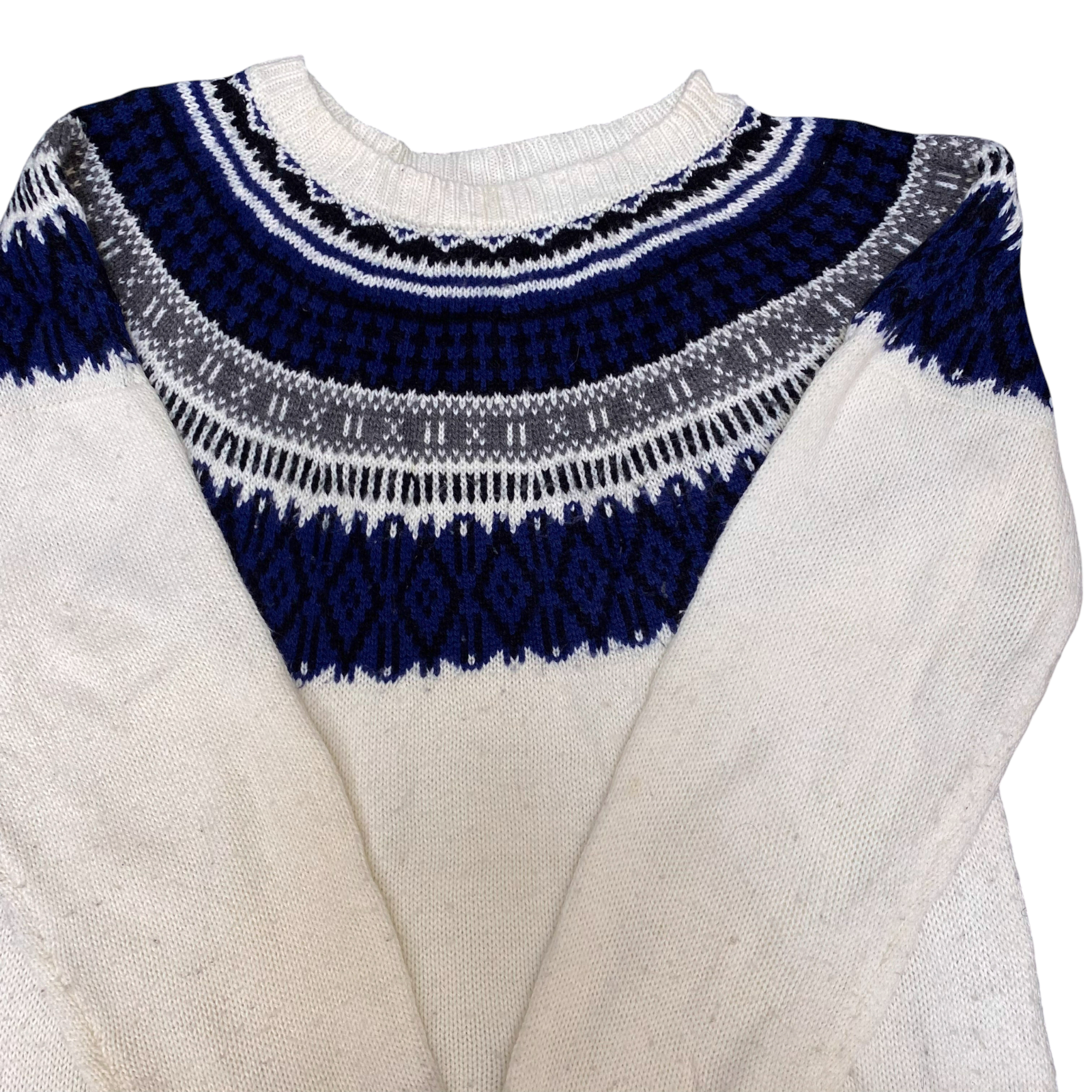 Discoat Jumper Womens Small White Blue Fair Isle Nordic Wool Winter Holiday