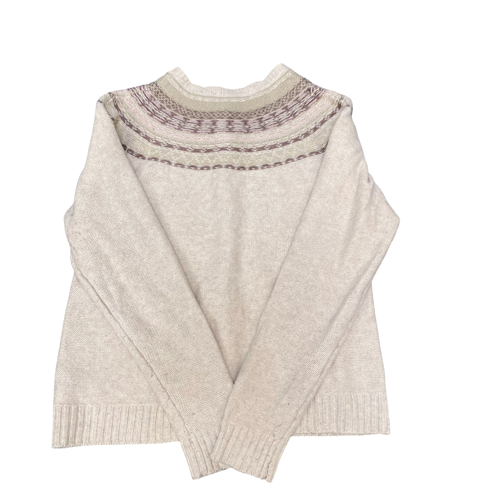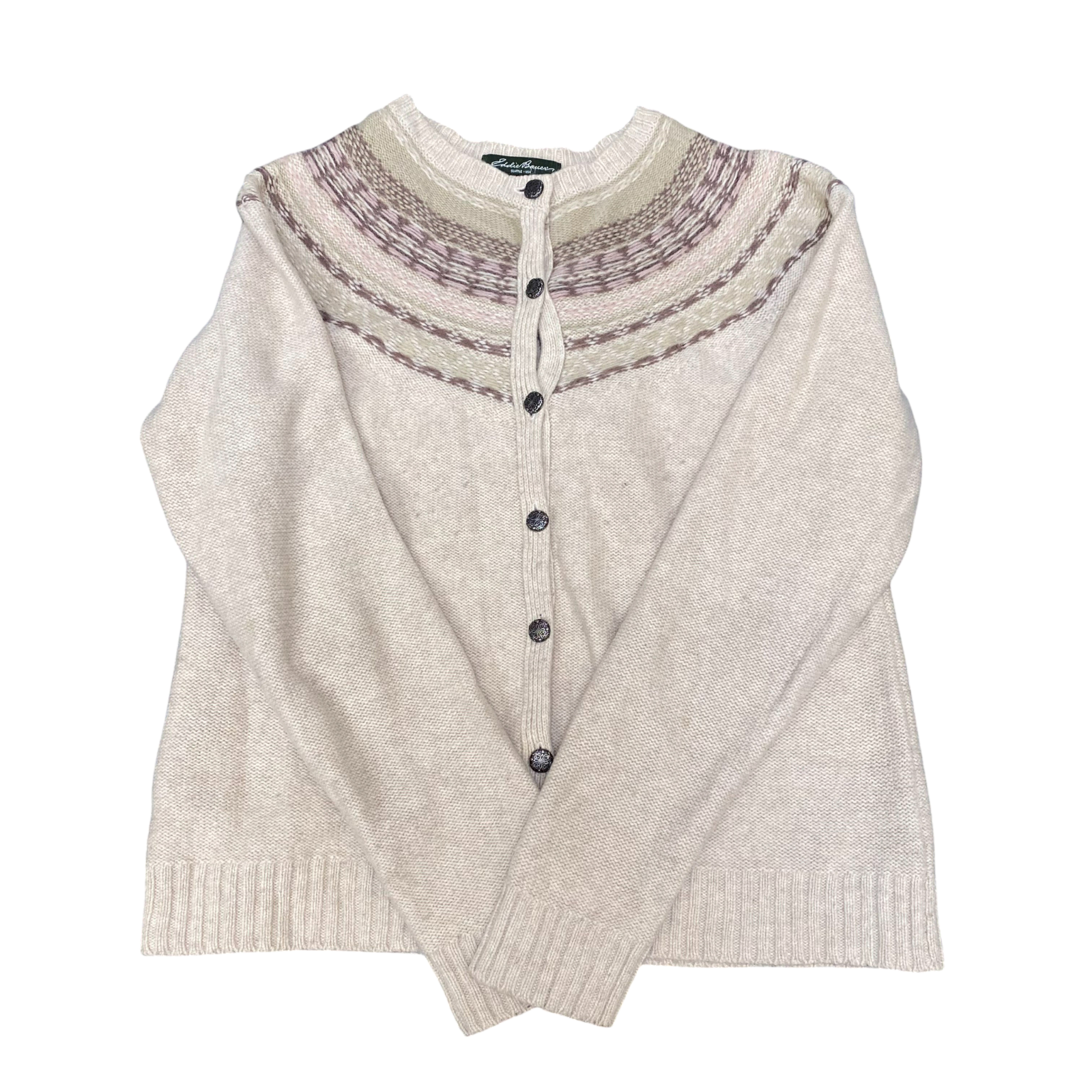 Eddie Bauer Cardigan Womens Large Petite Cream Fair Isle Nordic Button Front