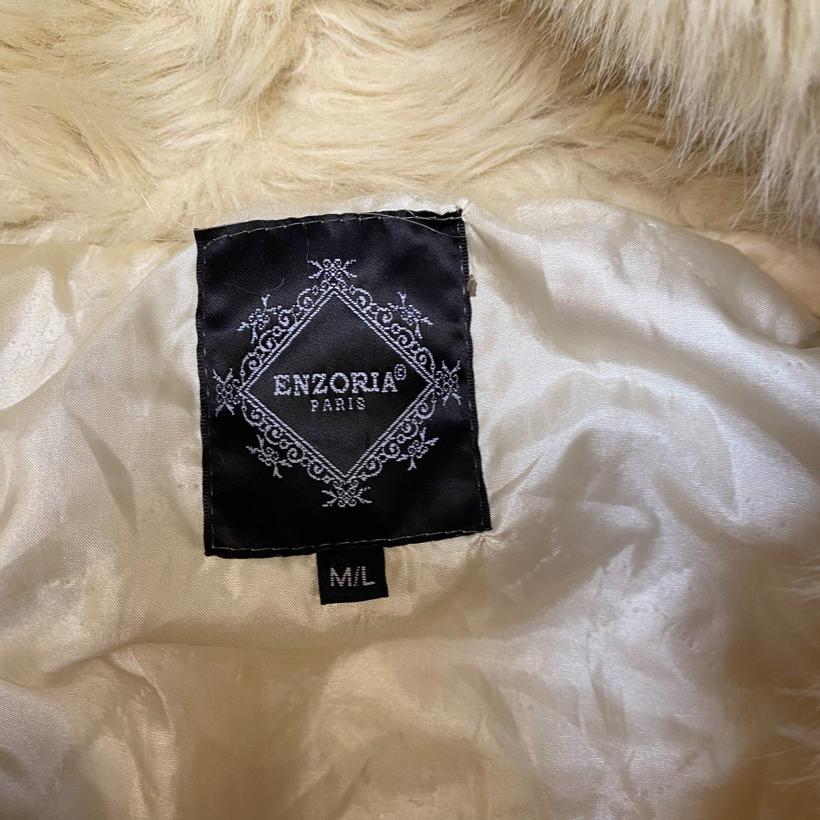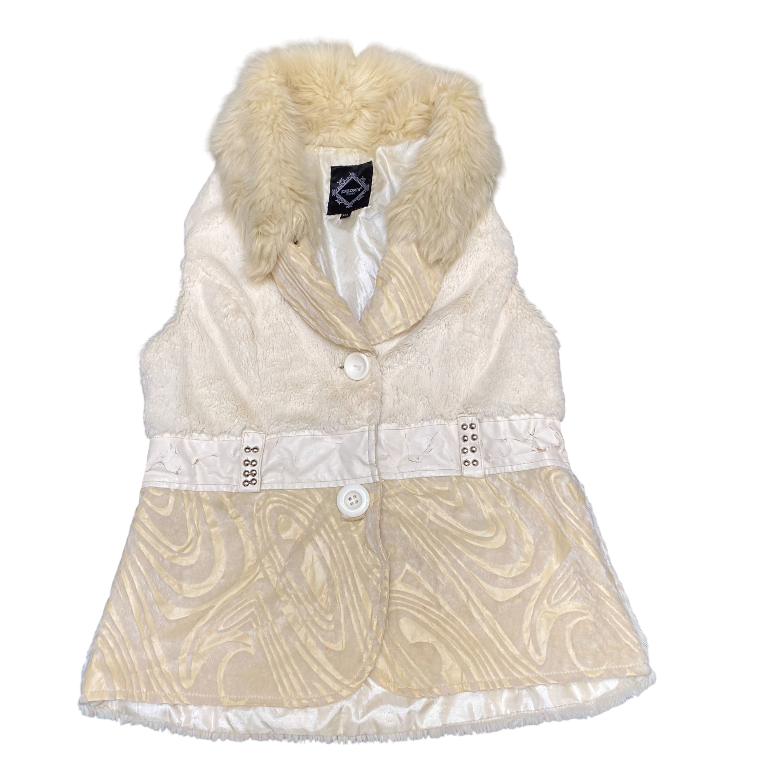 Enzoria Faux Fur Vest Womens M/L Beige Sleeveless Shawl Collar Button Front