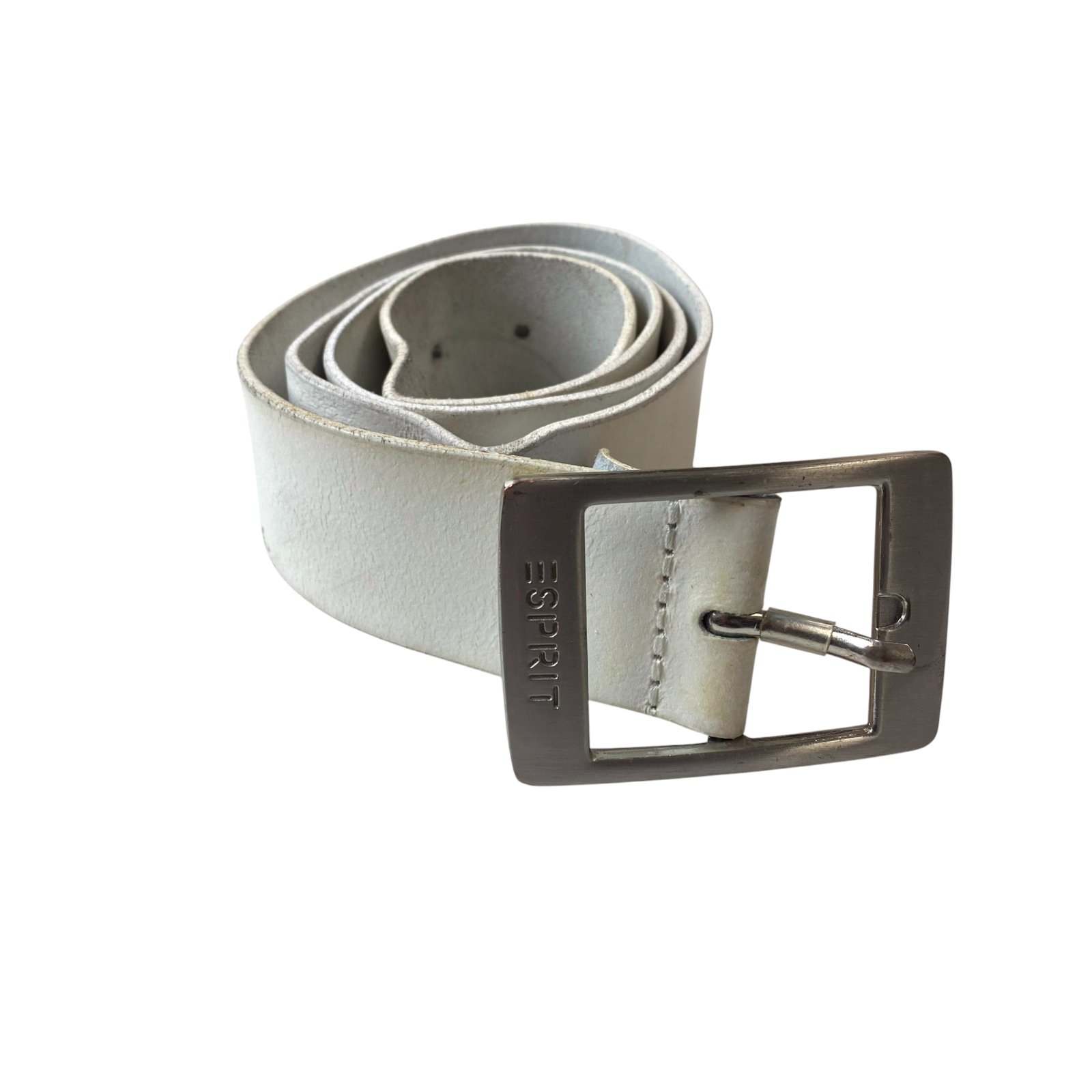 Esprit Belt Women White Leather Embossed Logo Adjustable Pin Buckle Size 40.5 in