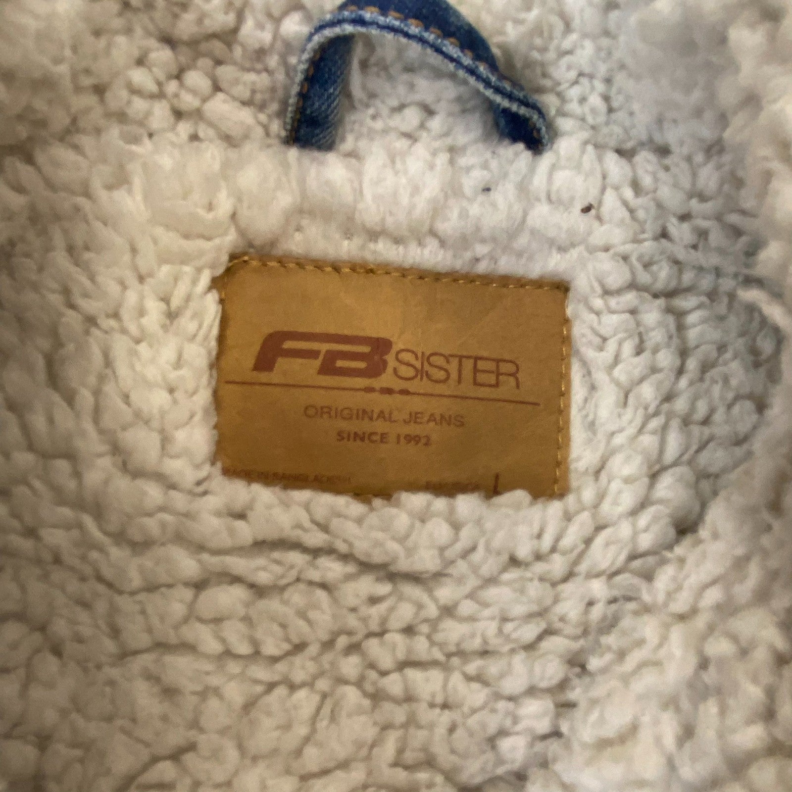 FB Sister Jean Jacket Womens Large Blue Denim Sherpa Lined Collared Button Front