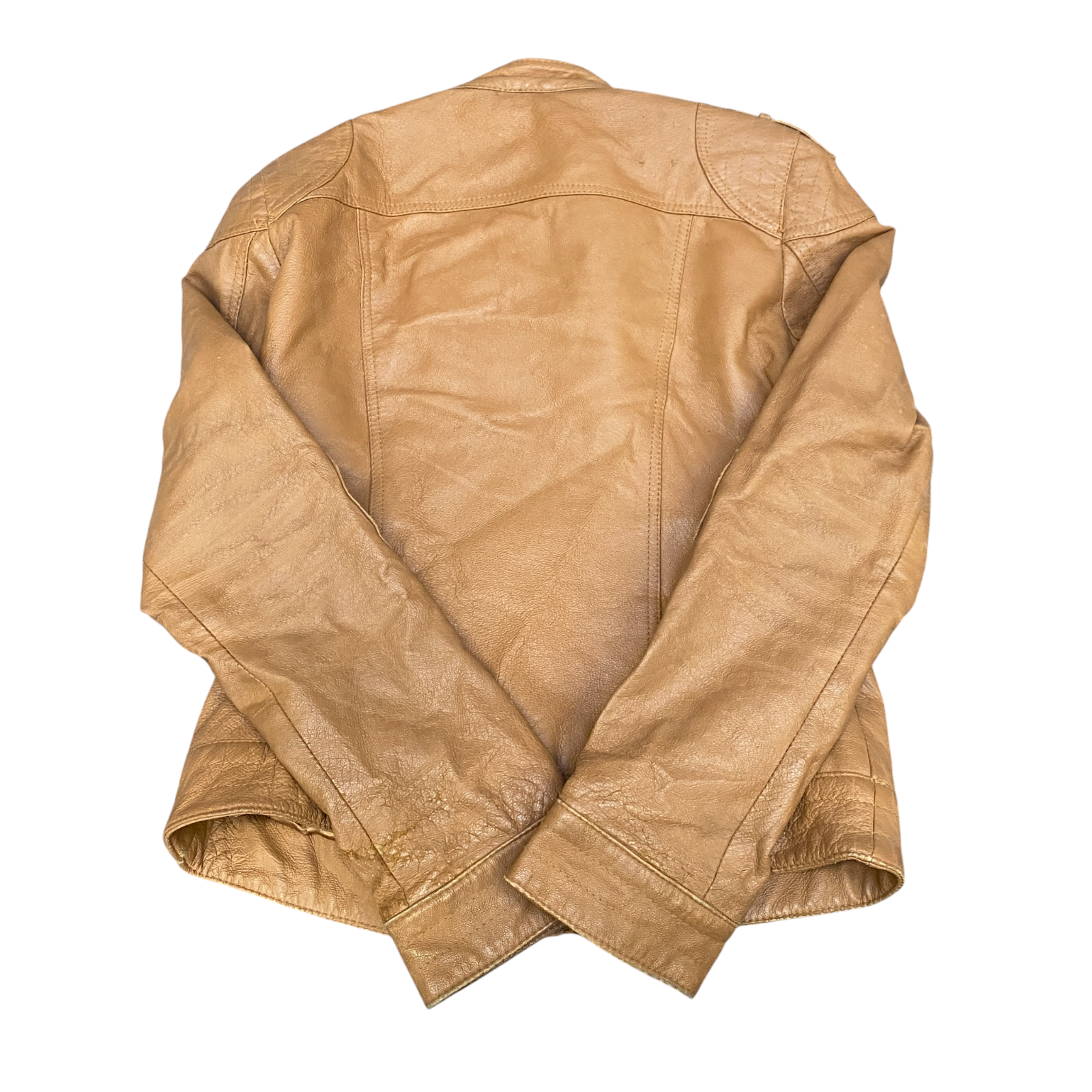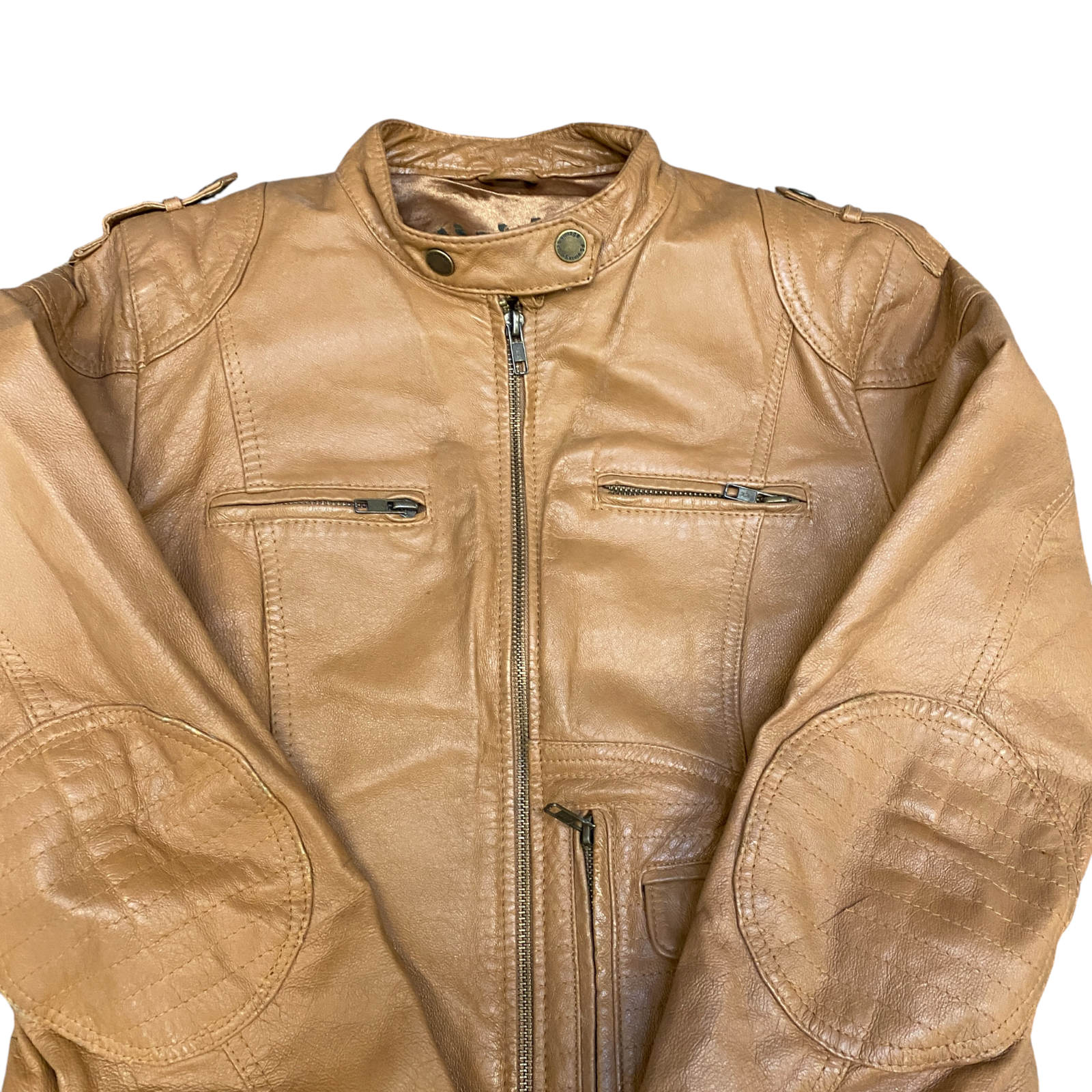 Fishbone Leather Biker Jacket Womens Medium Brown Lined Long Sleeve Full Zipper