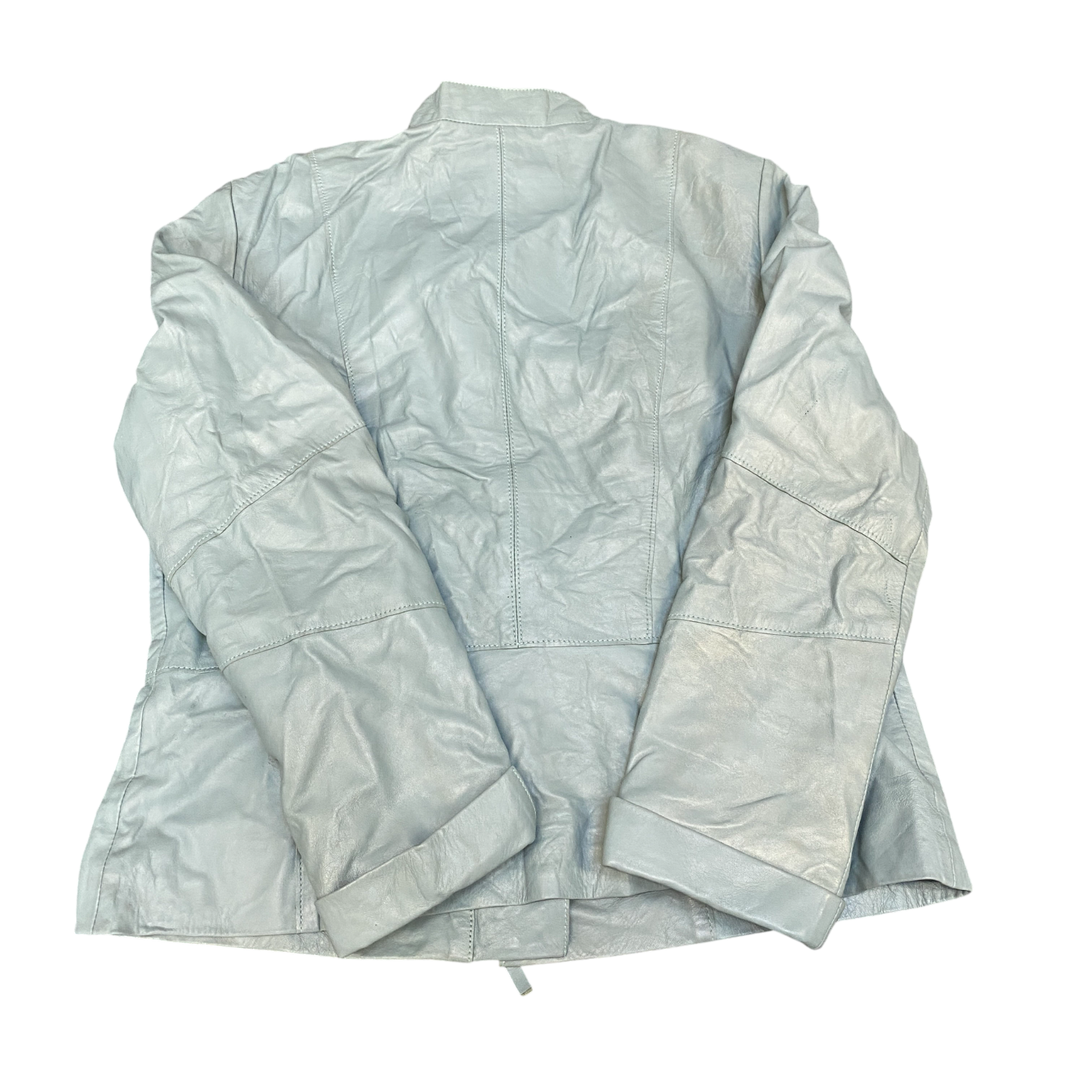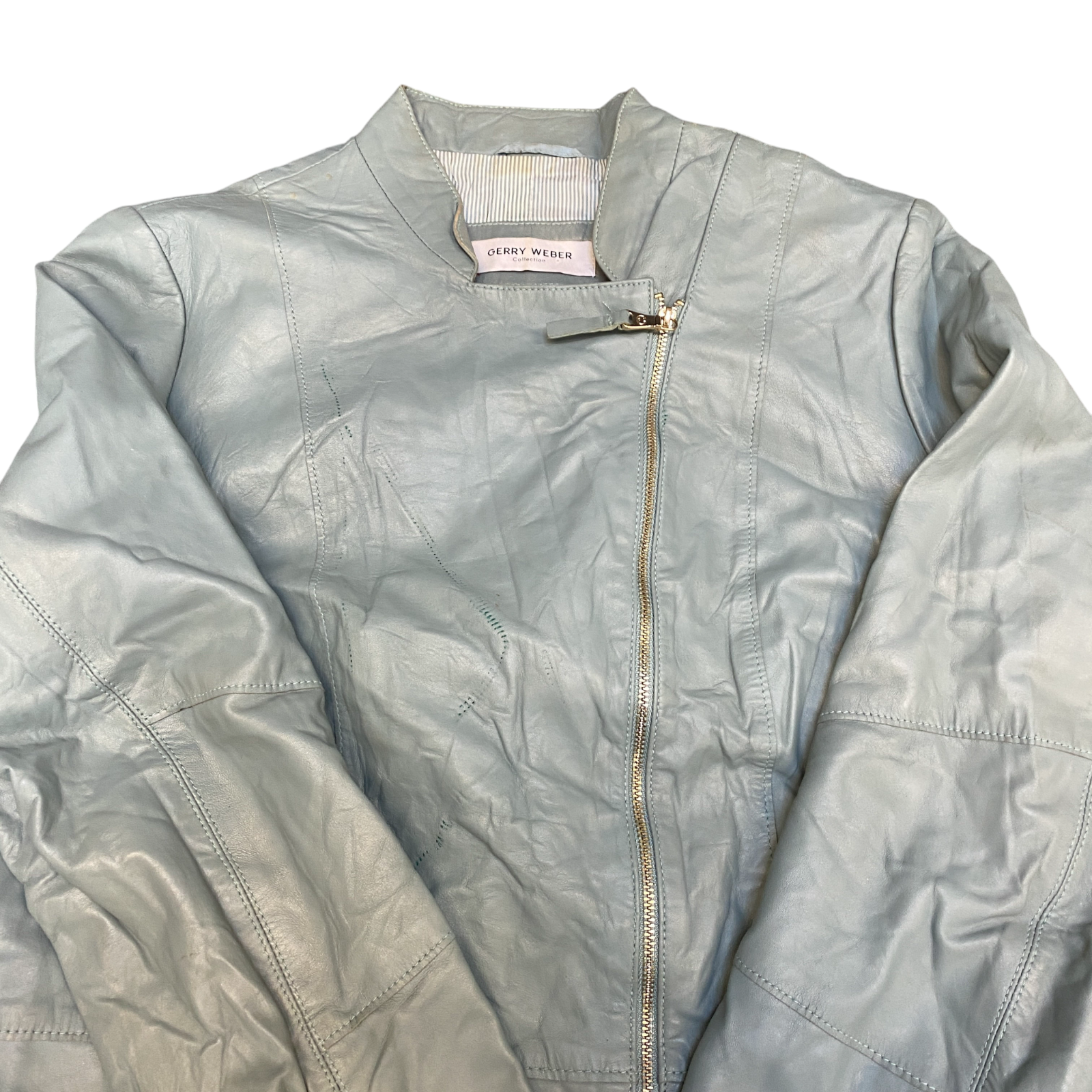 Gerry Weber Genuine Leather Biker Jacket Womens M Blue Lined Asymmetrical Zip