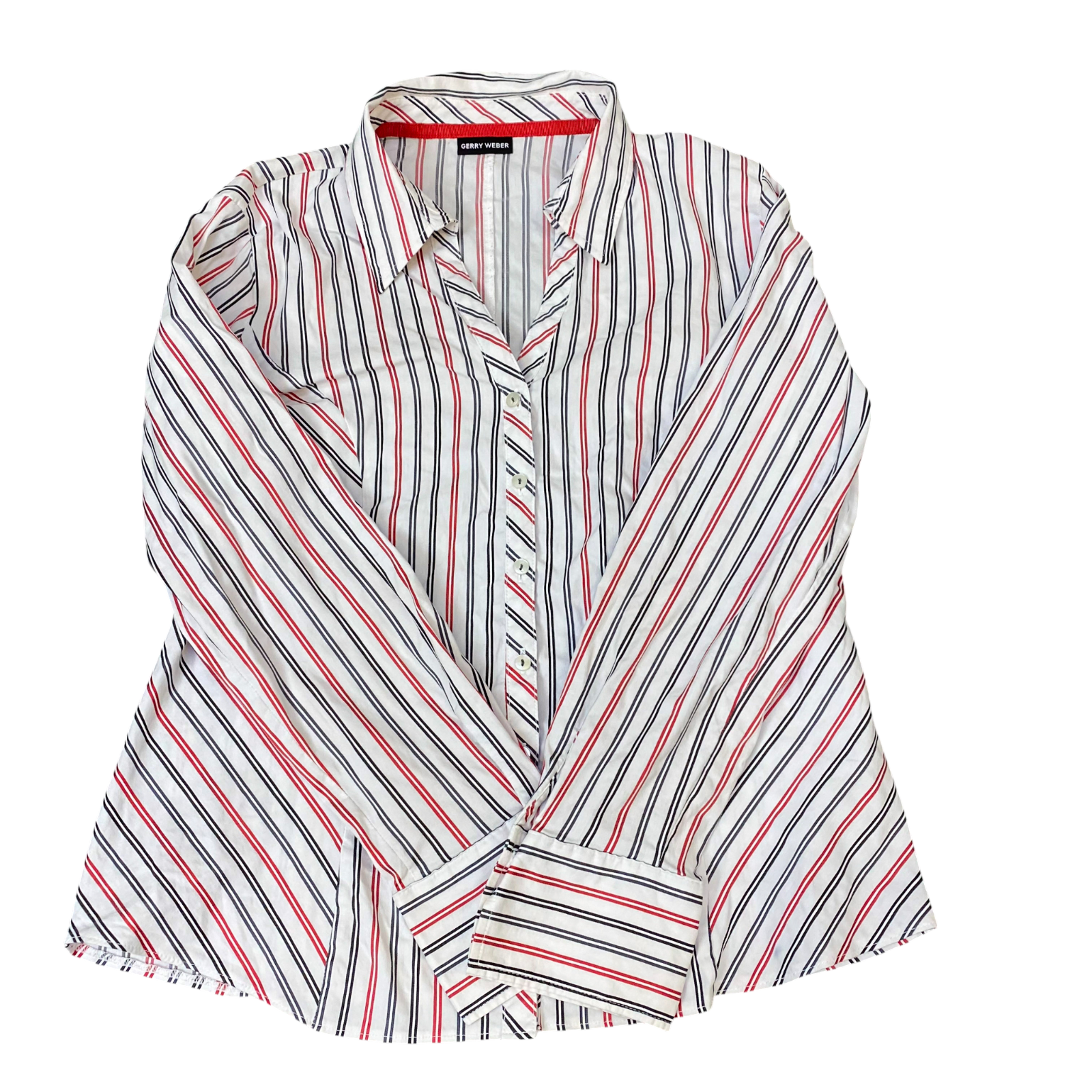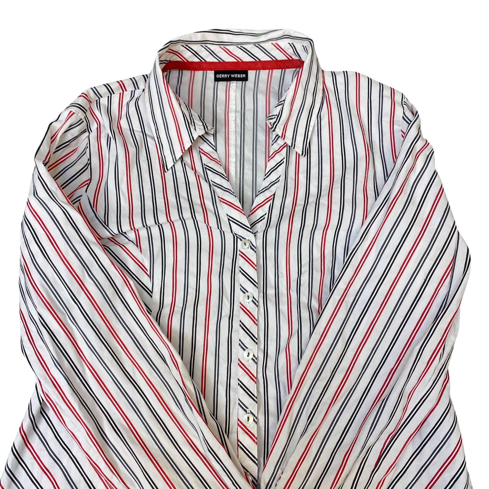 Gerry Weber Shirt Womens M White Red Striped Long Sleeve Collared Button Front