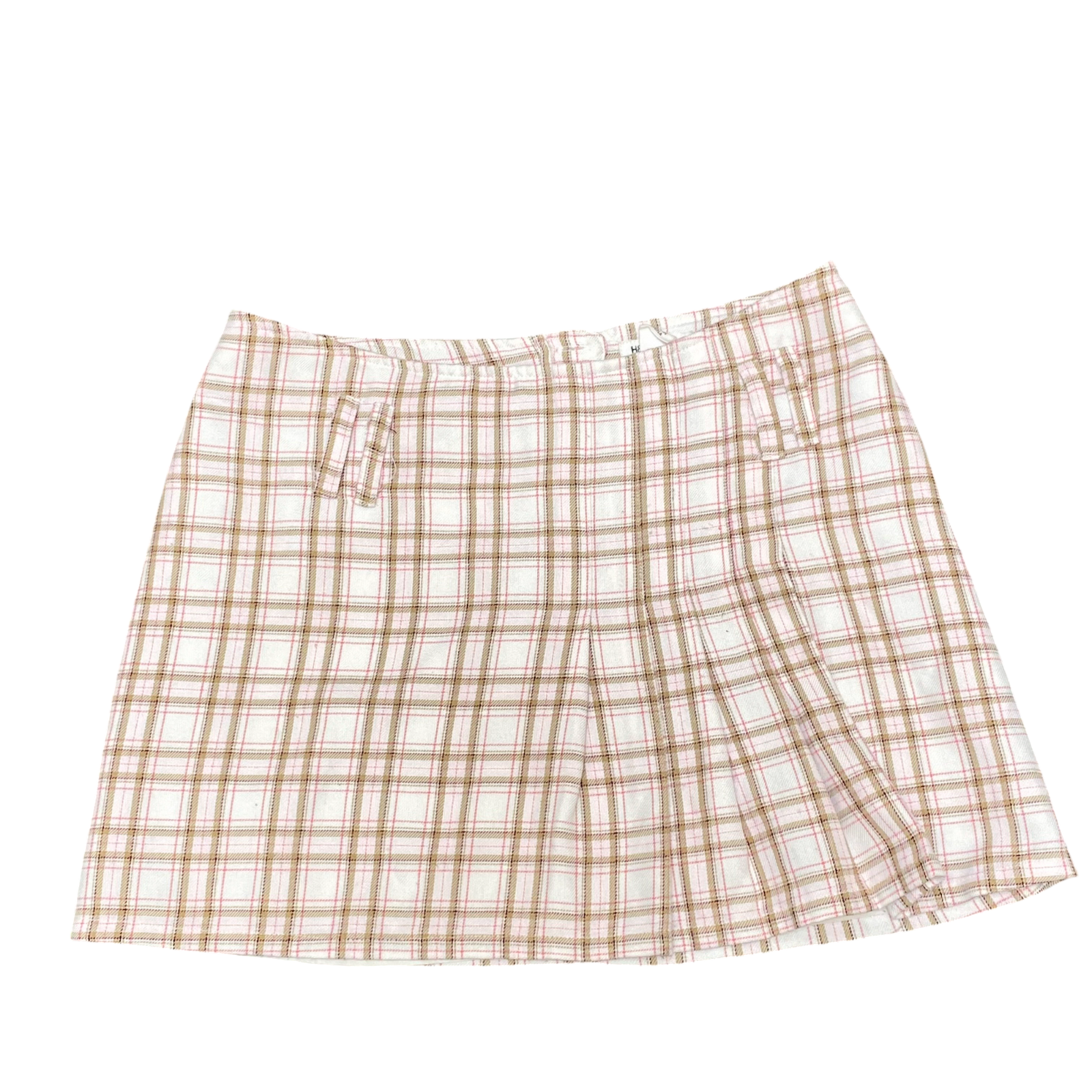 H&M A Line Skirt Young Girls M White Brown Plaid Lined Pleated Classic Preppy