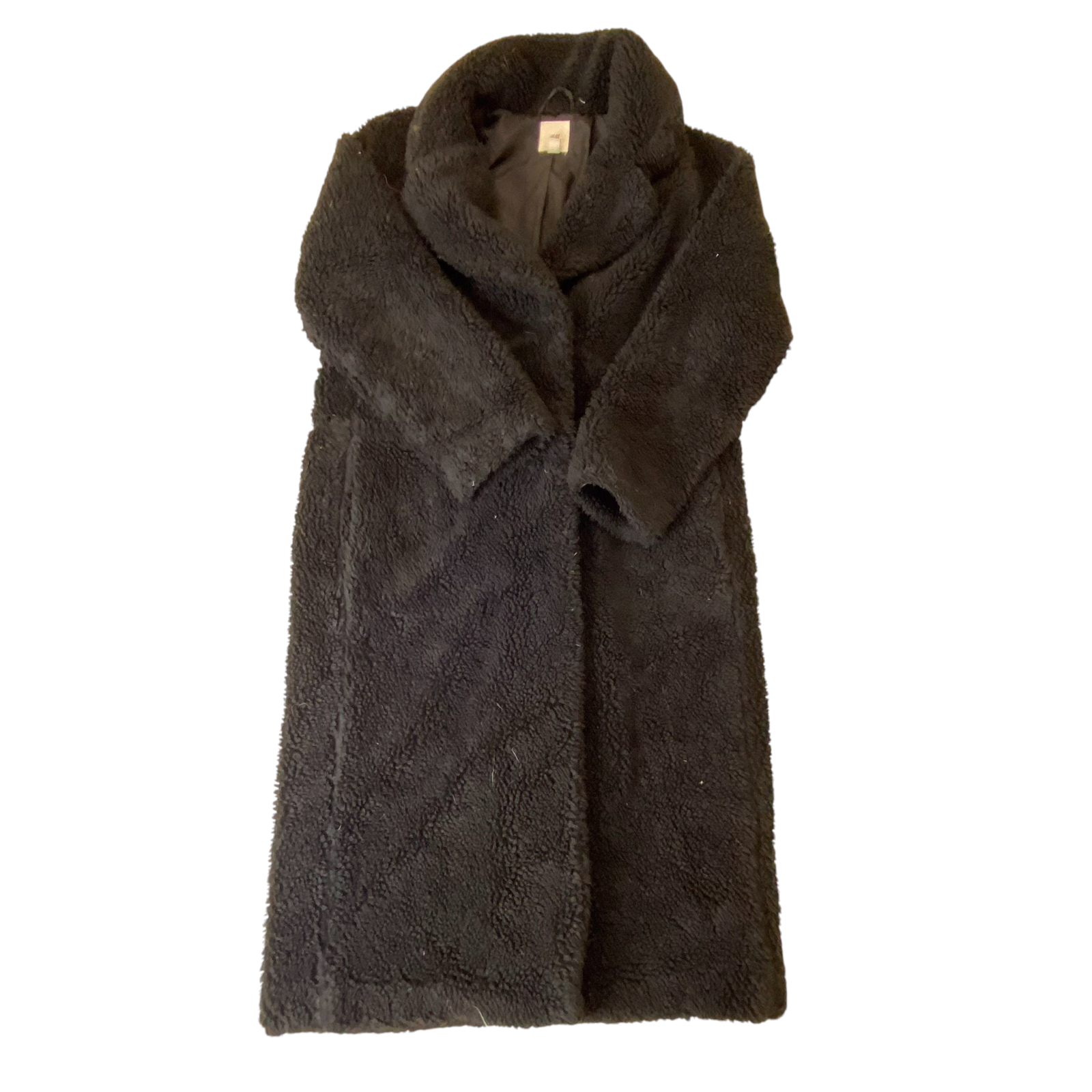 H&M Trench Coat Womens Medium Black Sherpa Fleece Notch Colla Warm Open Front
