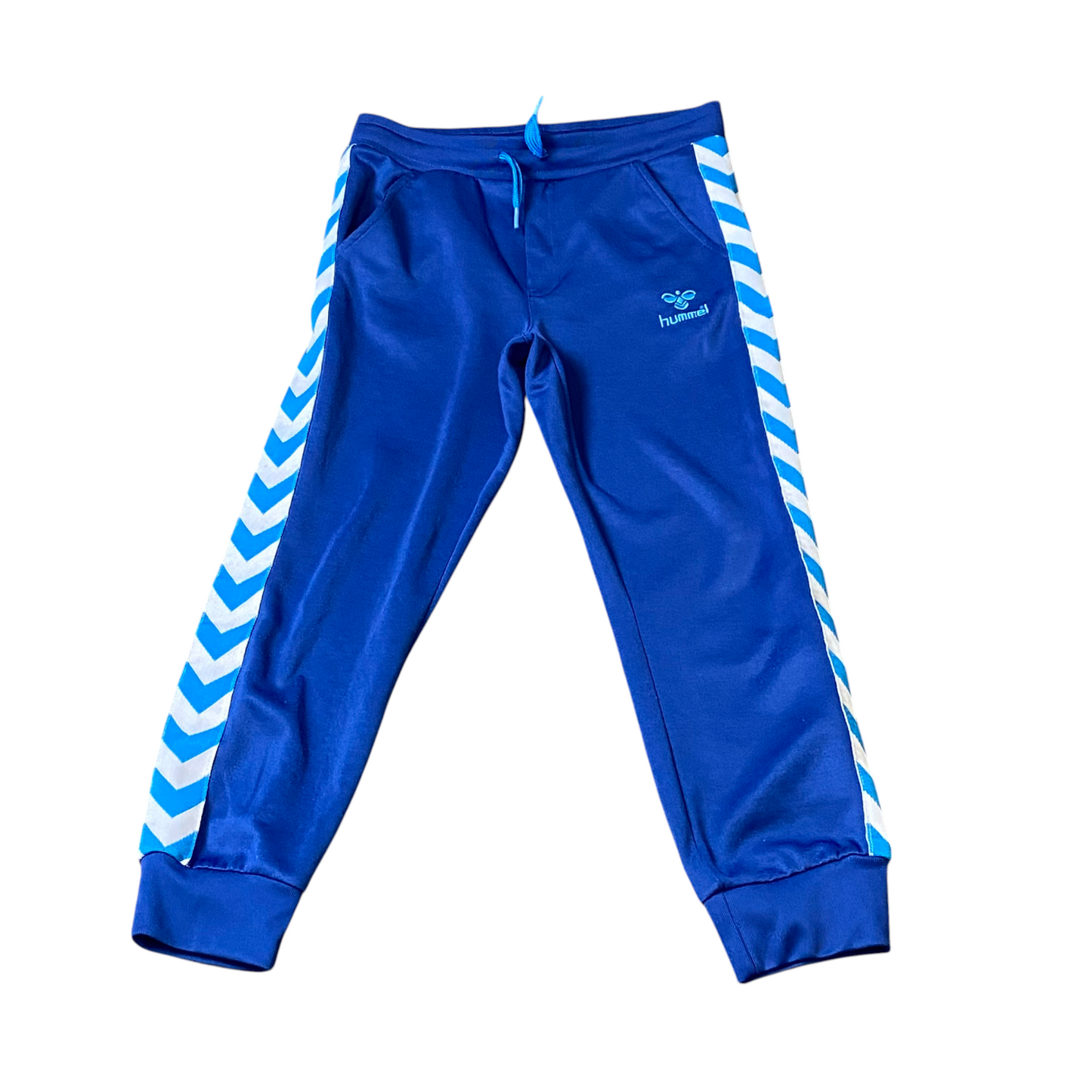 Hummel Joggers Boys Small Blue Tapered Fit Elastic Waist Side Stripe Track Pants