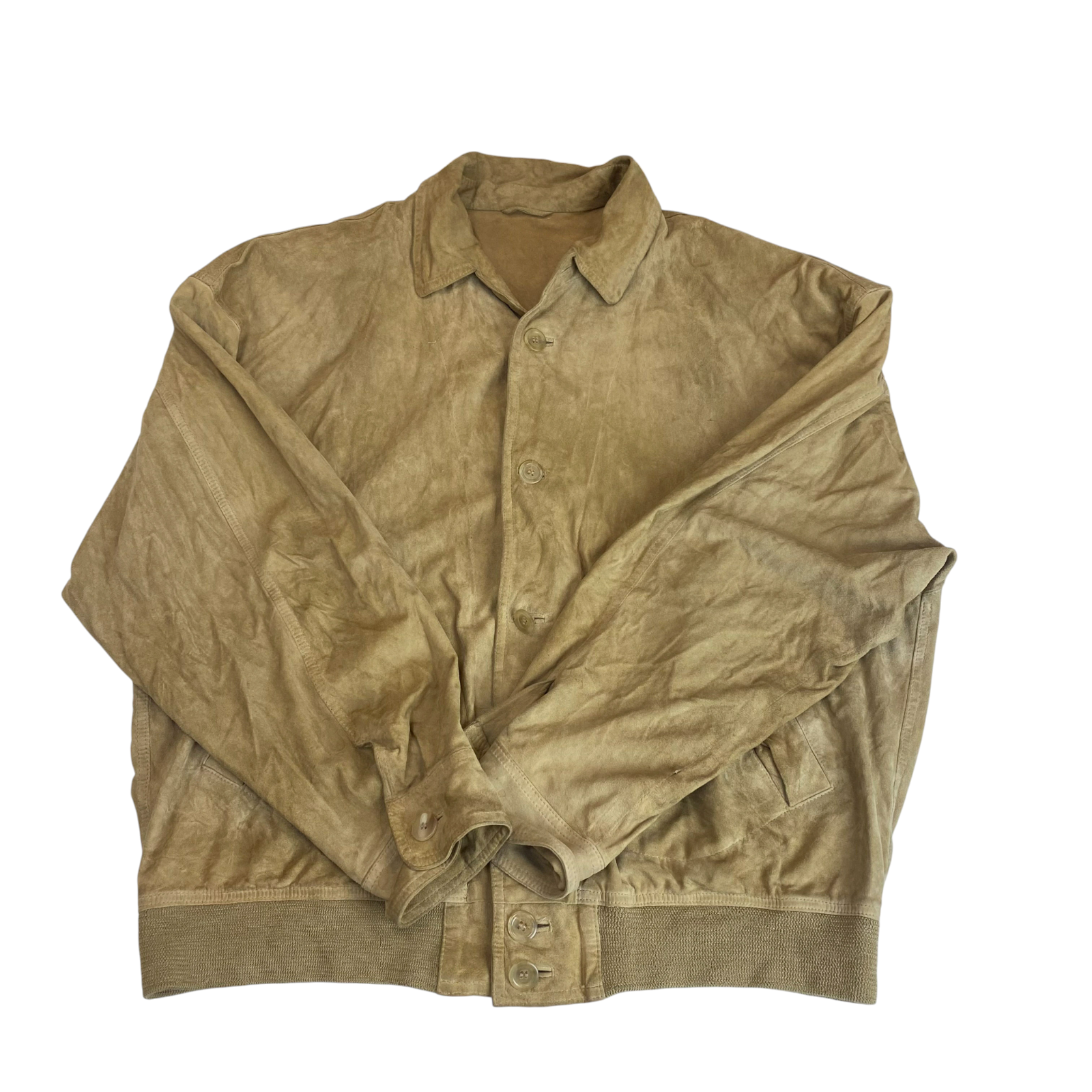 Jacket Mens L Green Suede Leather Pockets Long Sleeve Collared Button Front