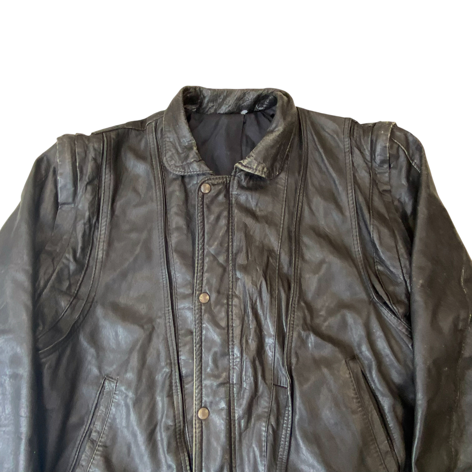 Jacket Mens Large Black Genuine Leather Pockets Long Sleeve Collared Snap Front