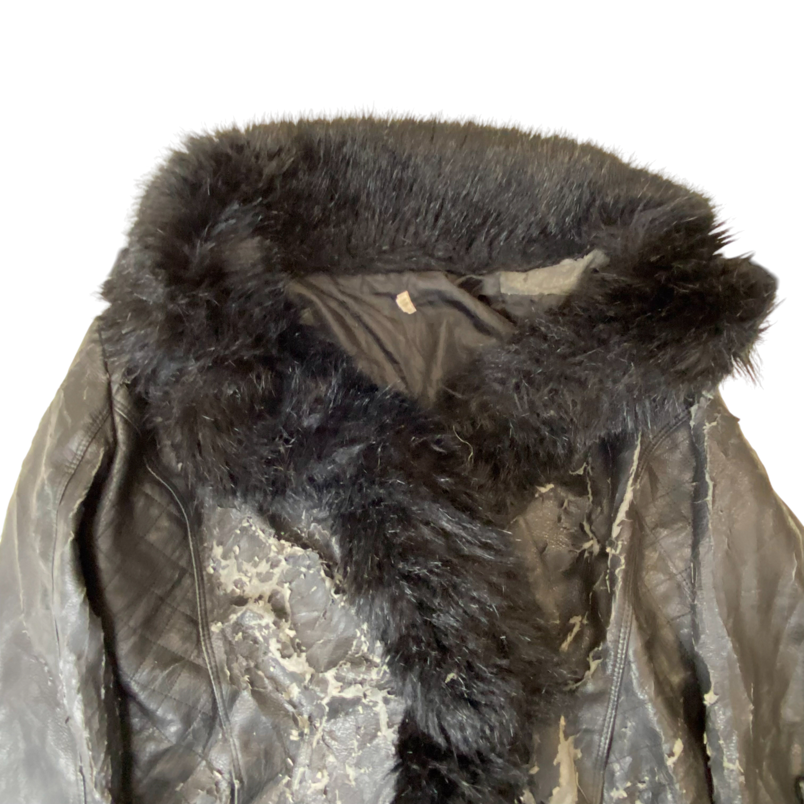Jacket Womens Medium Black Genuine Leather Fur Edge Long Sleeve Open Front