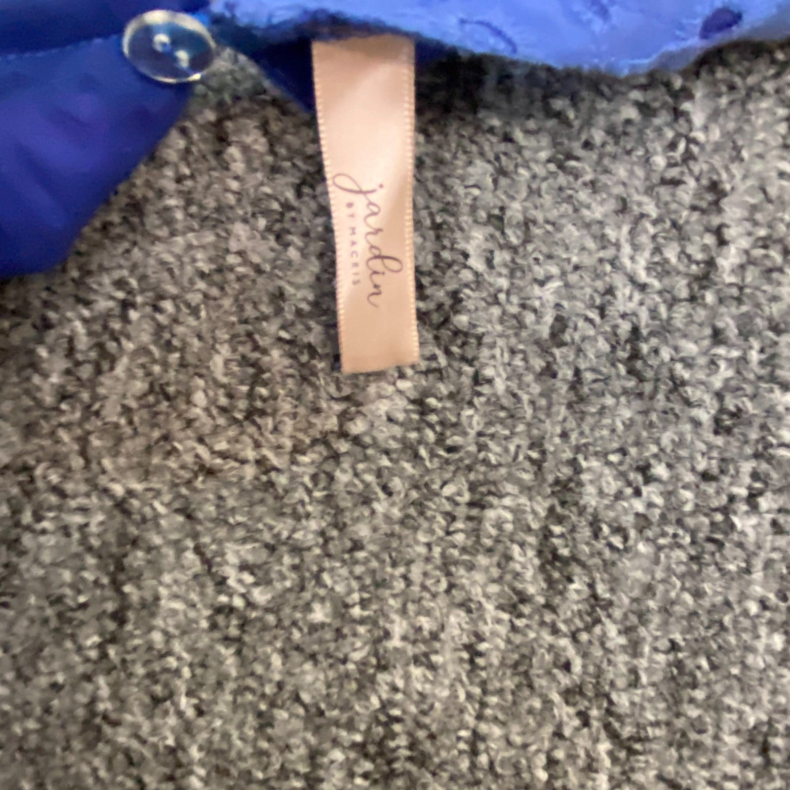 Jarolin A-Line Dress Womens M Blue Embroidered Eyelet Deep V-Neck Scallop Hem