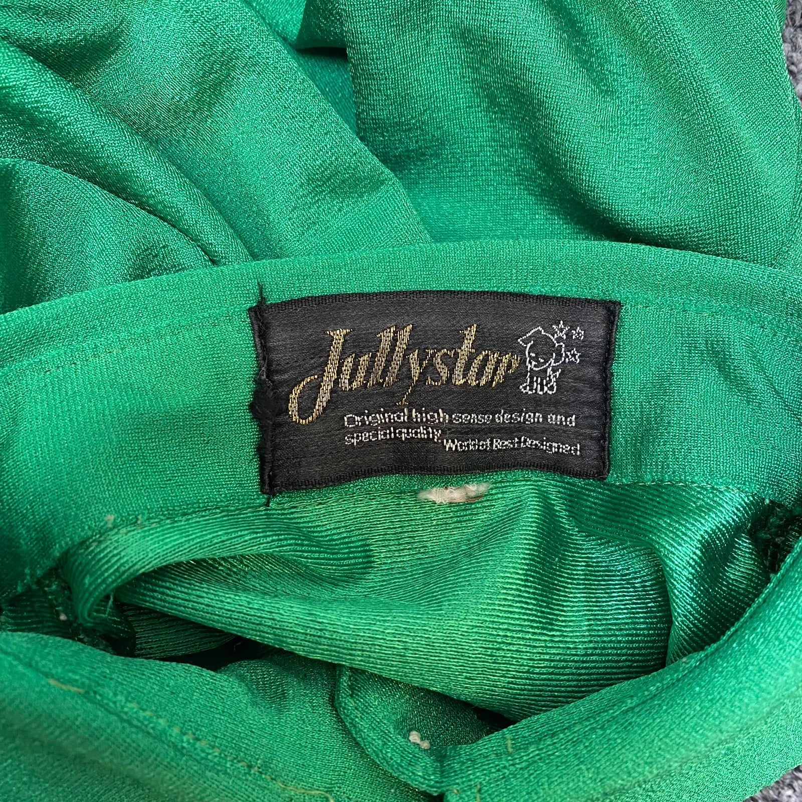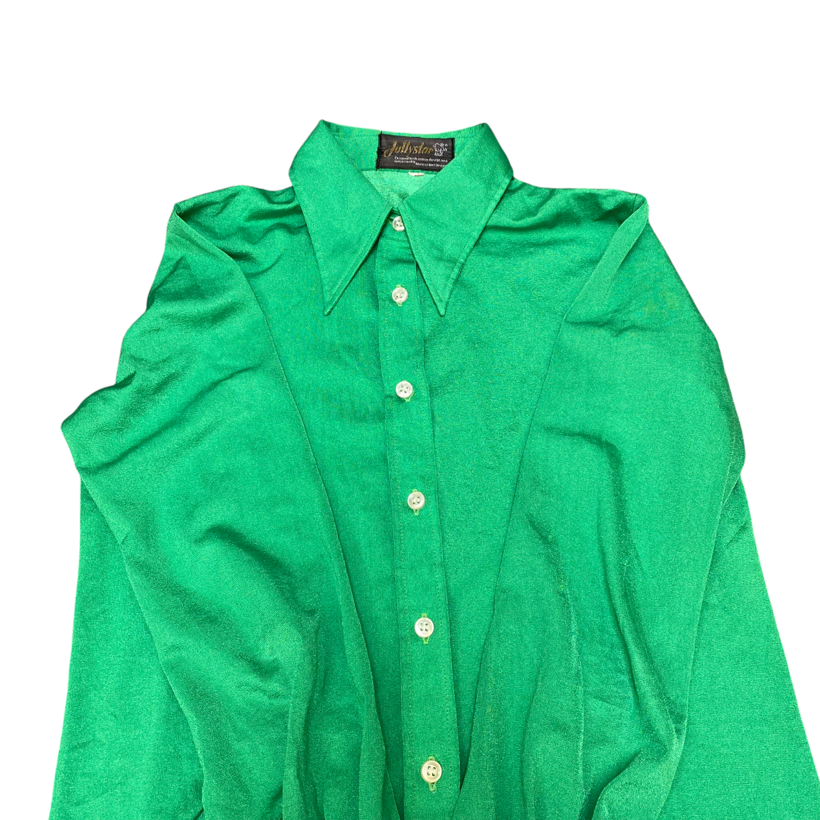 Jully Star Shirt Top Women S Green Solid Satin Long Sleeve Collared Button Front