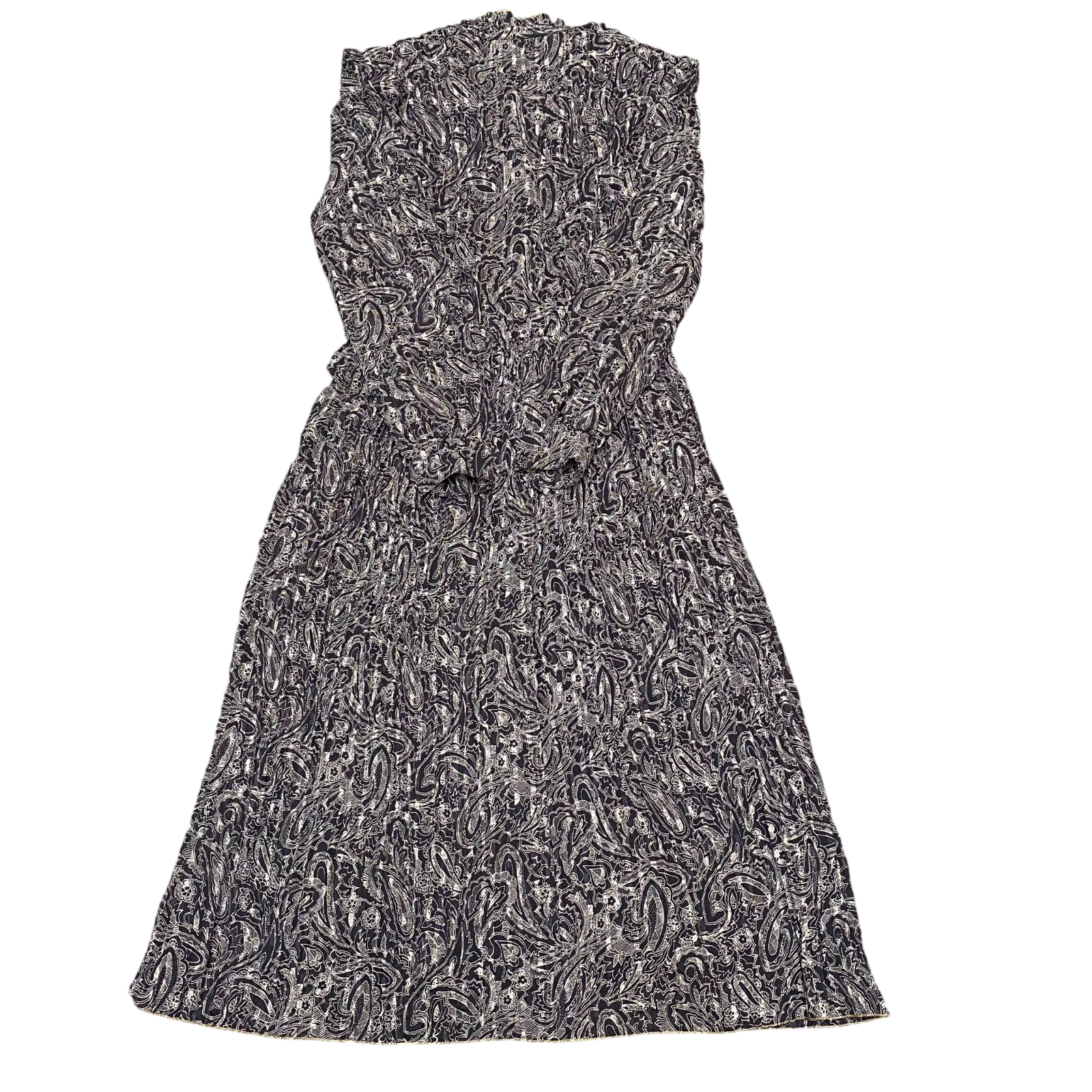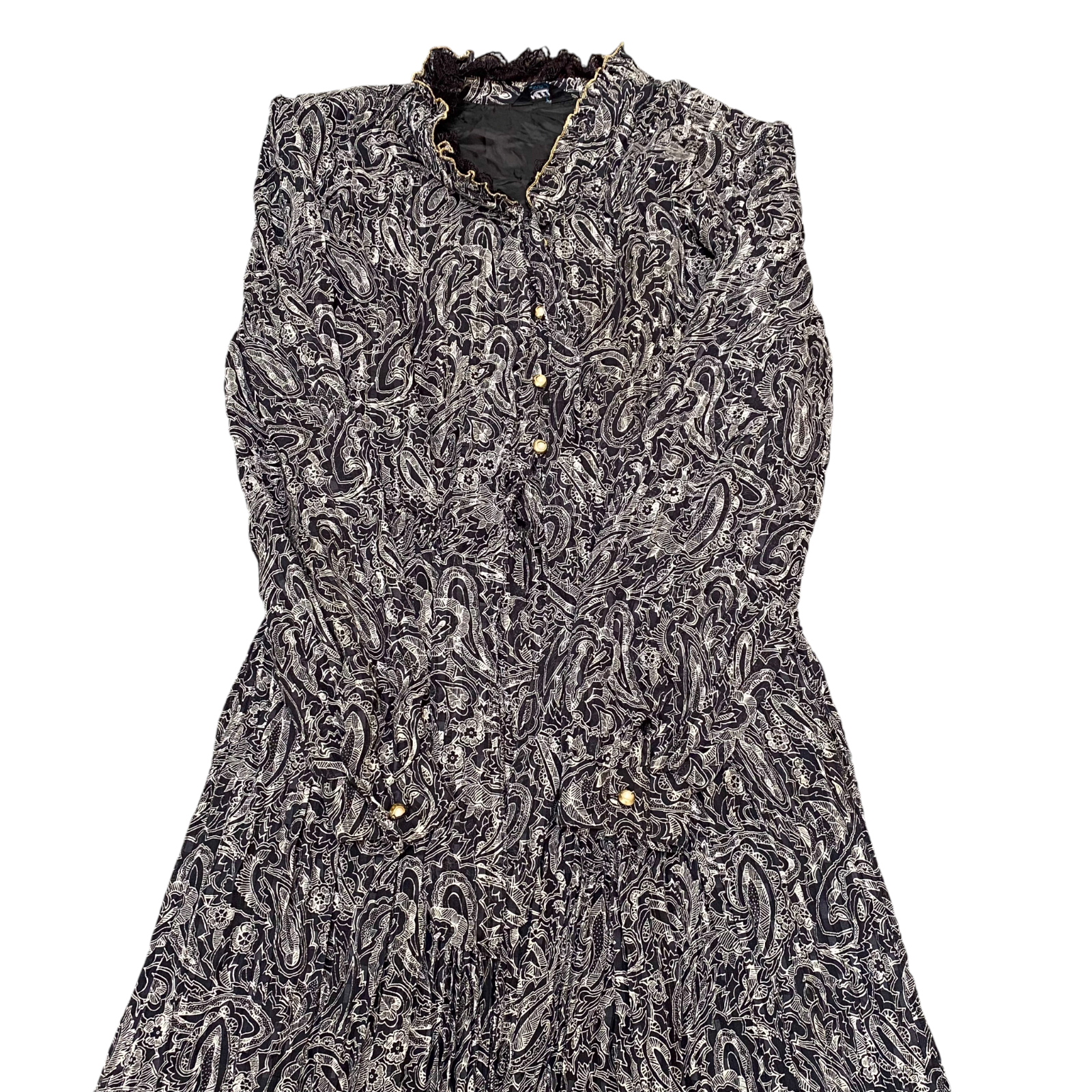 Kii Maxi Dress Women M Black Paisley Long Sleeve Pleated Round Neck Button Front