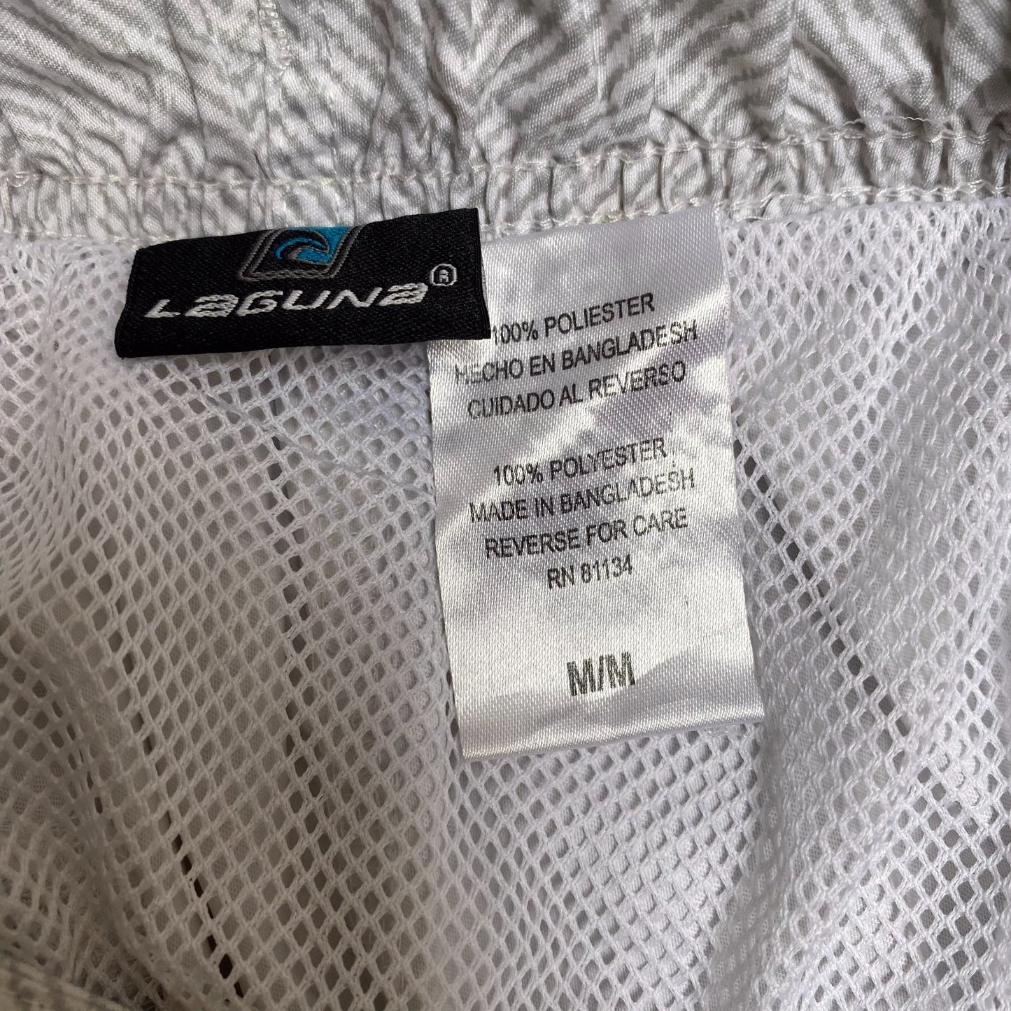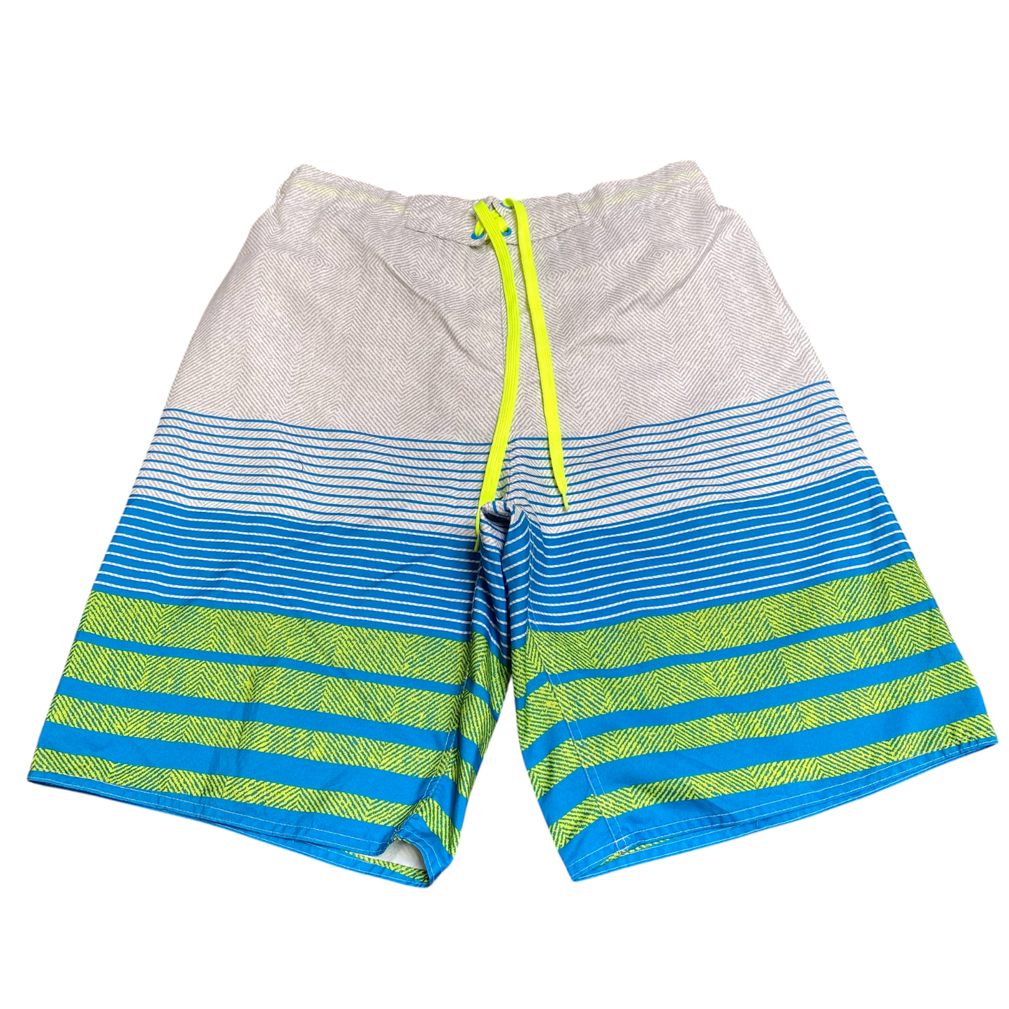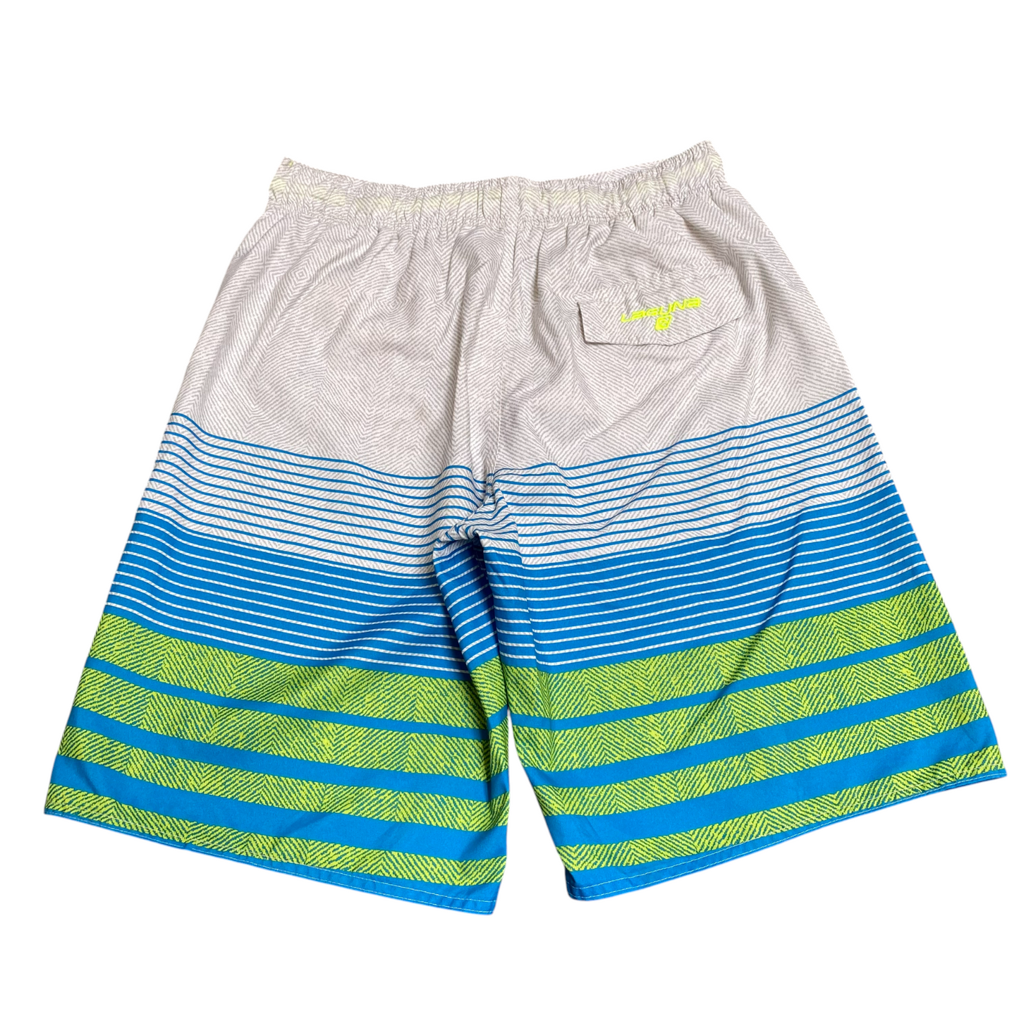 Laguna Swim Shorts Mens M Grey Green Striped Stretch Elastic Waist Drawstring