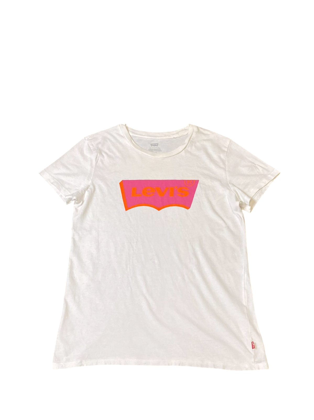 Levi's Shirt Womens Small White Batwing Logo Short Sleeve Classic Crew Neck Tee