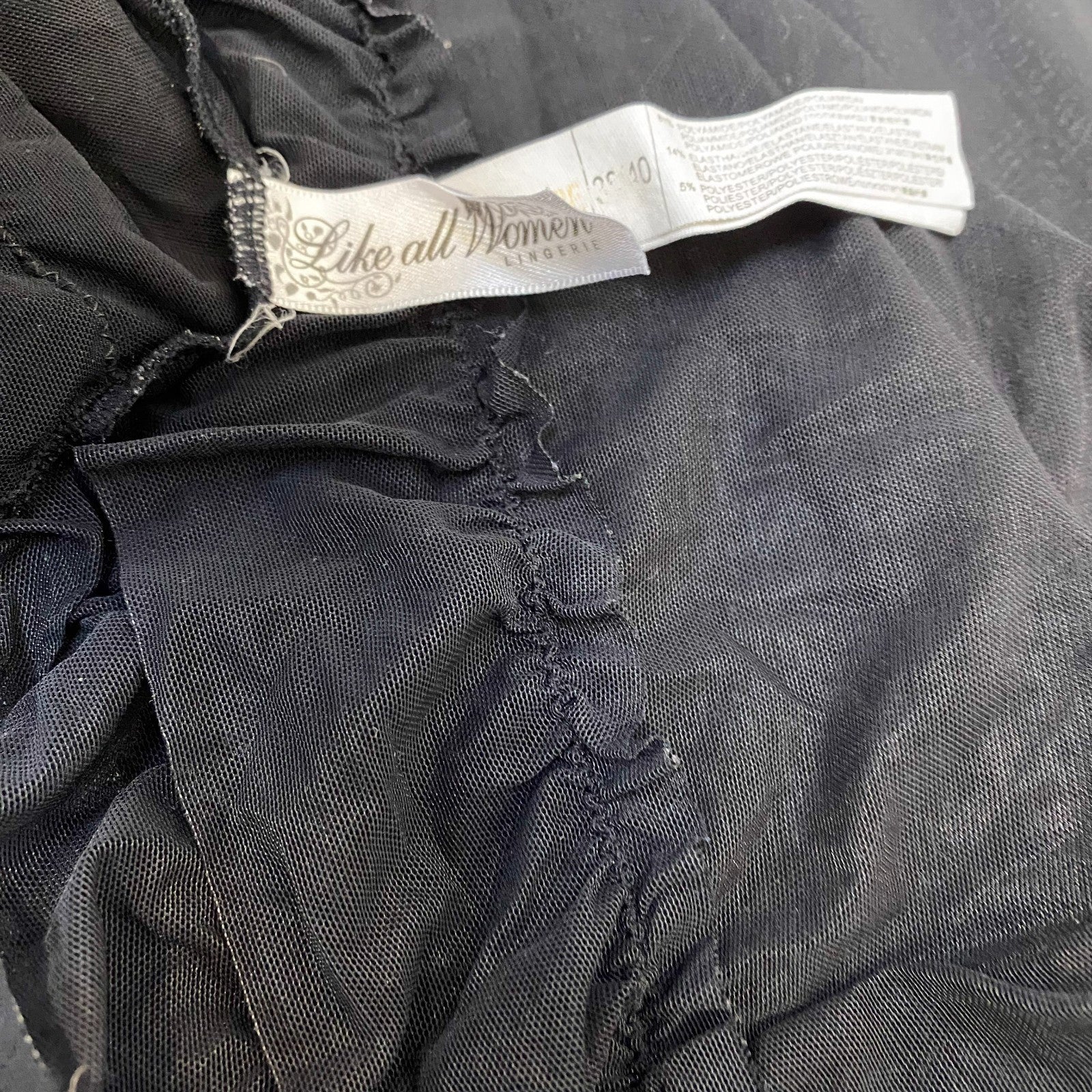 Like All Women Lingerie Womens S Black Mesh V-Neck Ruffle Hem Adjustable Straps