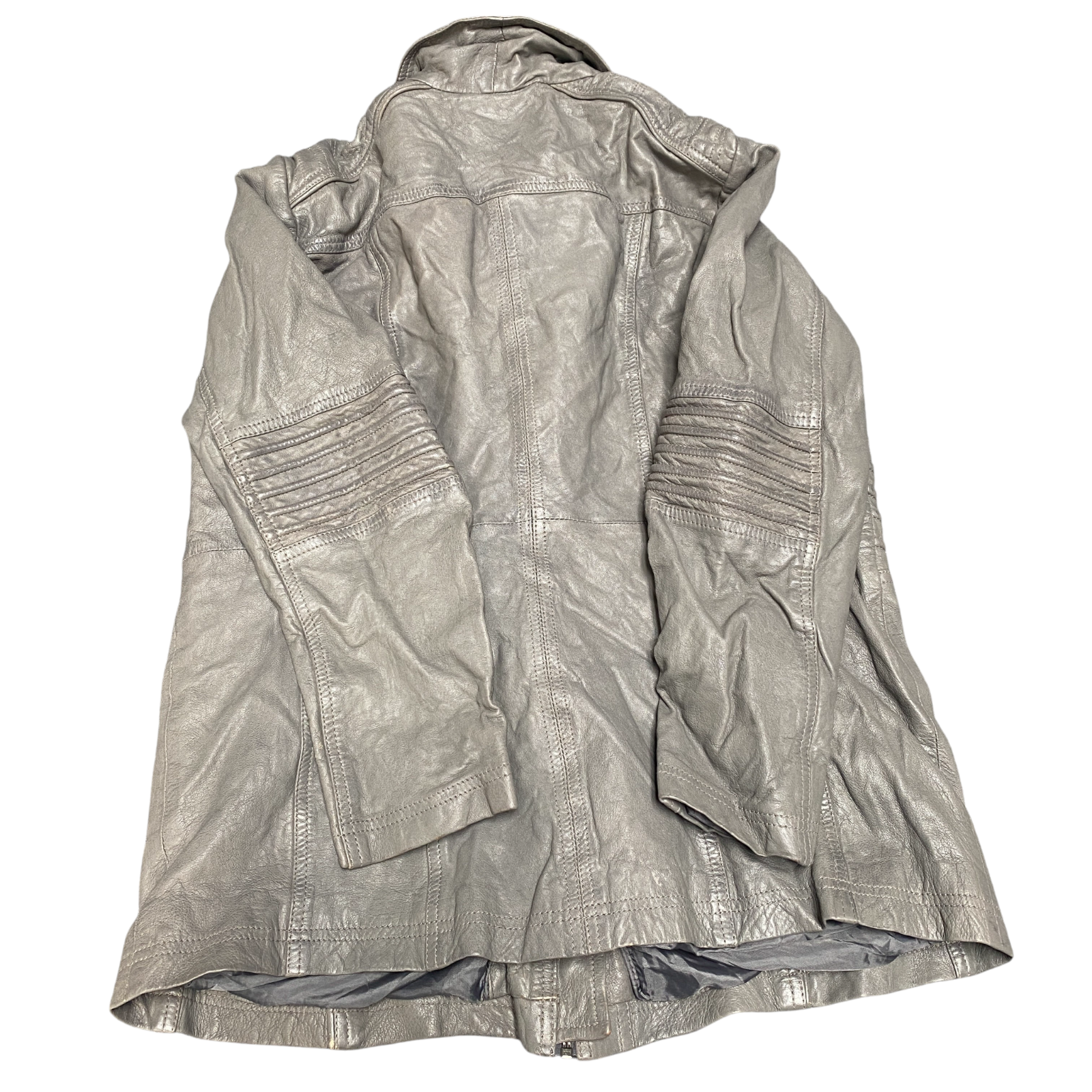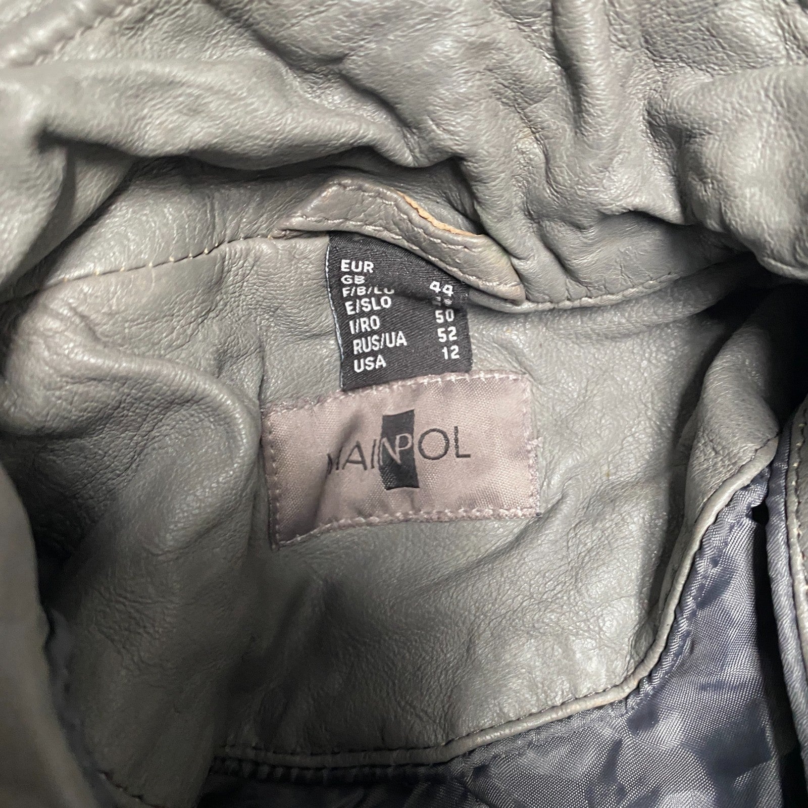 Mainpol Leather Motorcycle Jacket Womens M Grey Classic Fit Long Sleeve Full Zip