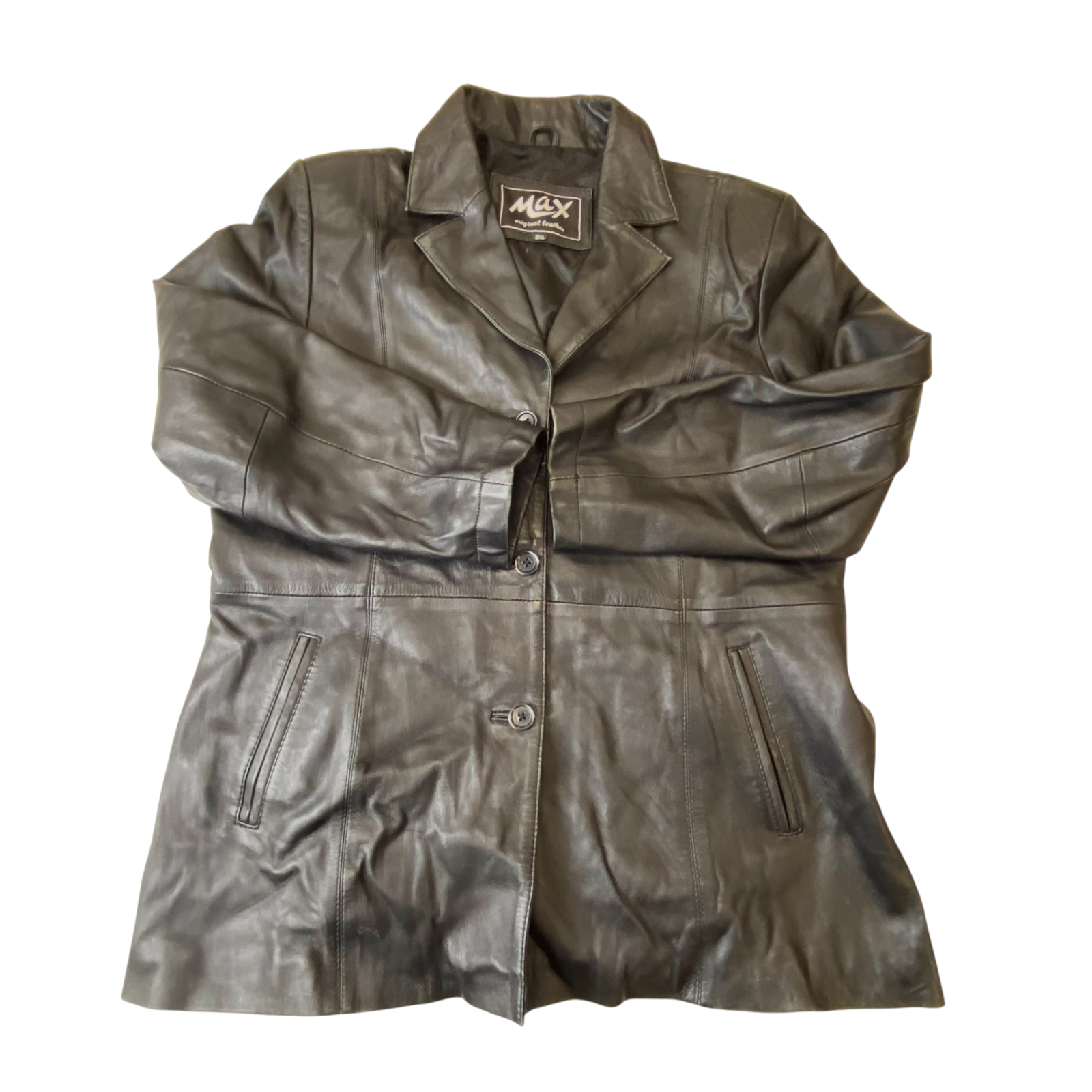 Max Original Leather Blazer Jacket Womens 3XL Black Notch Lapel Single Breasted