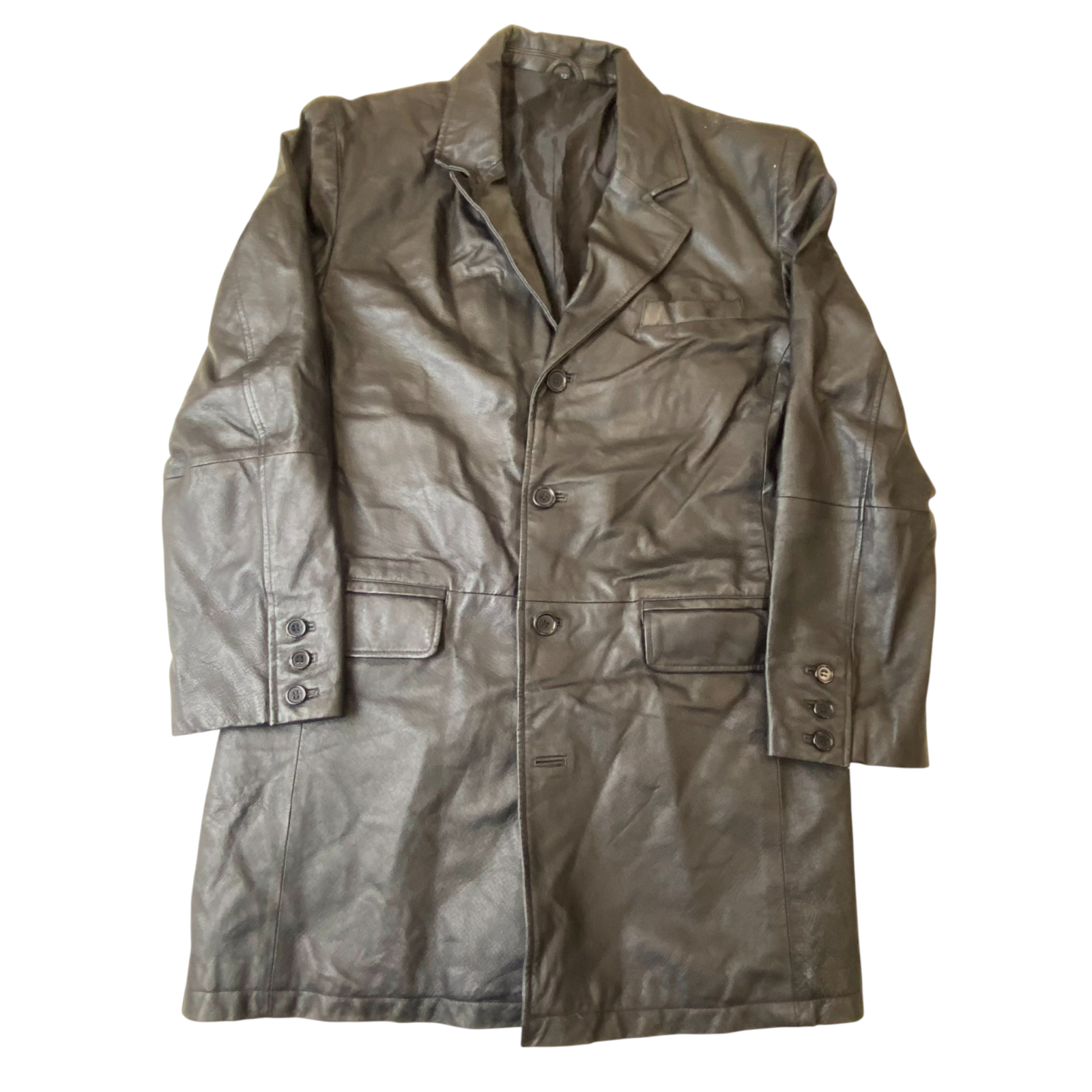 Men Leather Jacket Medium Black Long Sleeve Notch Lapel Single Breasted 3 Button