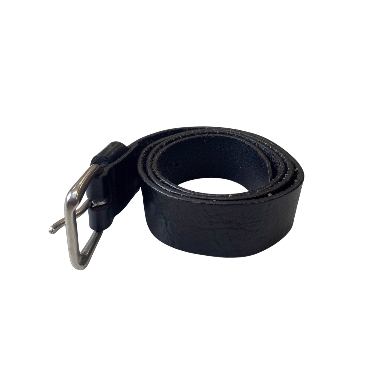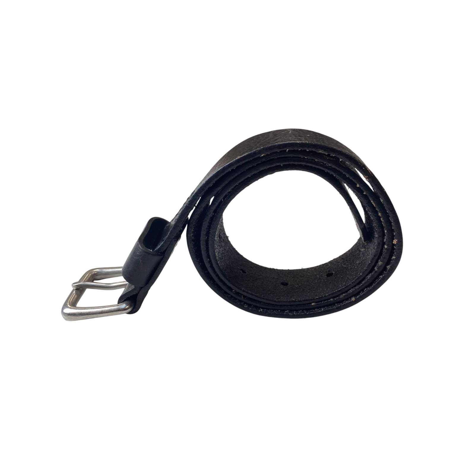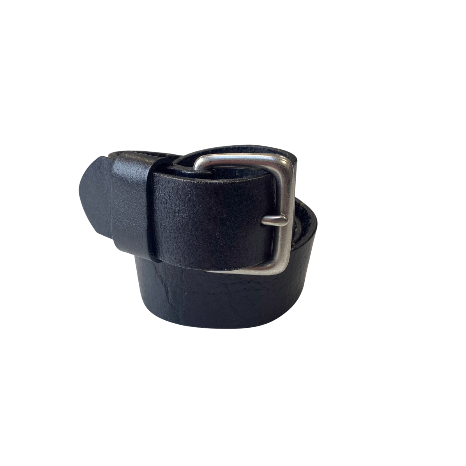 Men's Casual Waist Belt Black Leather Adjustable Silver Pin Buckle Size 37.5 in