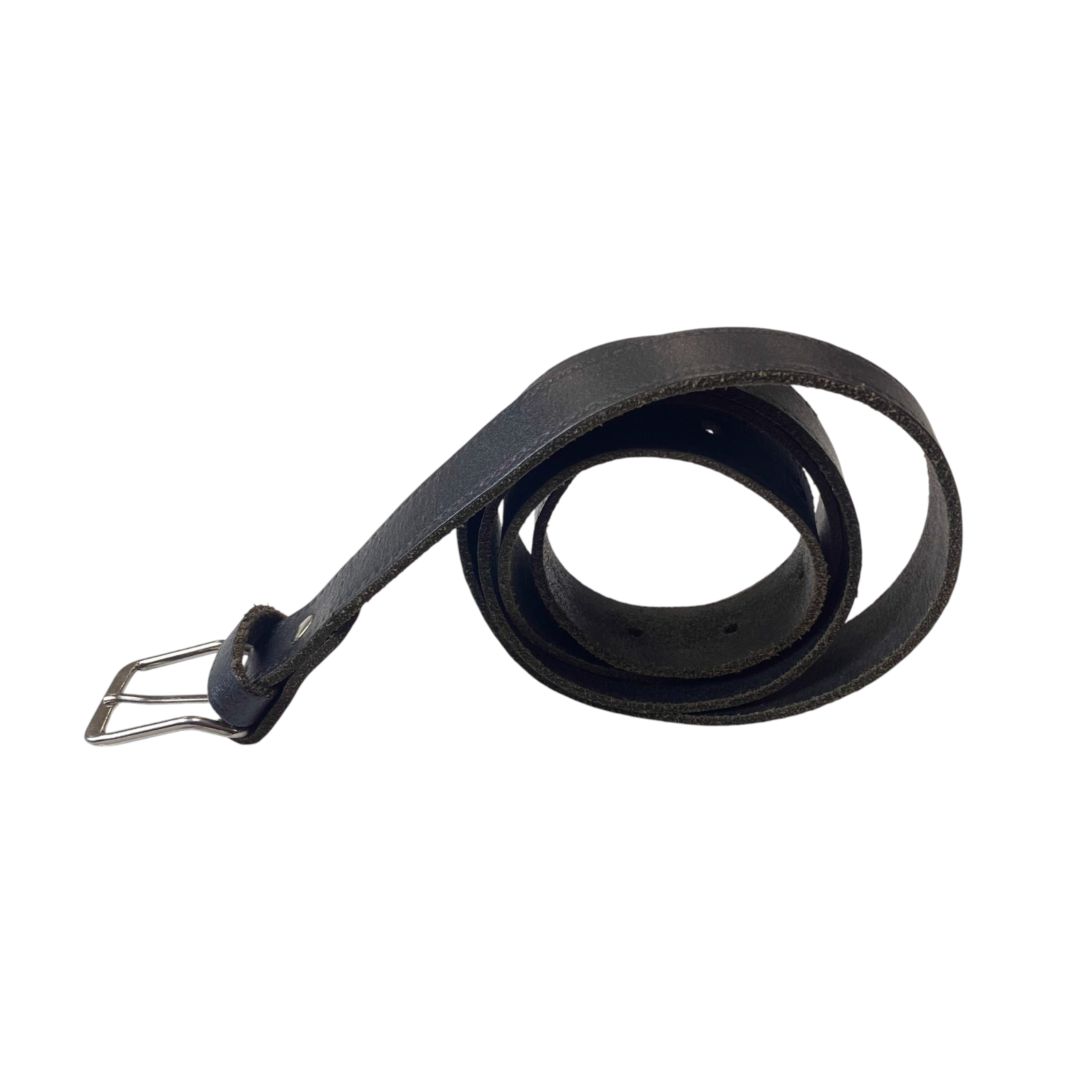 Mens Dress Belt Black Leather Silver Adjustable Buckle Casual Strap Size 45 in