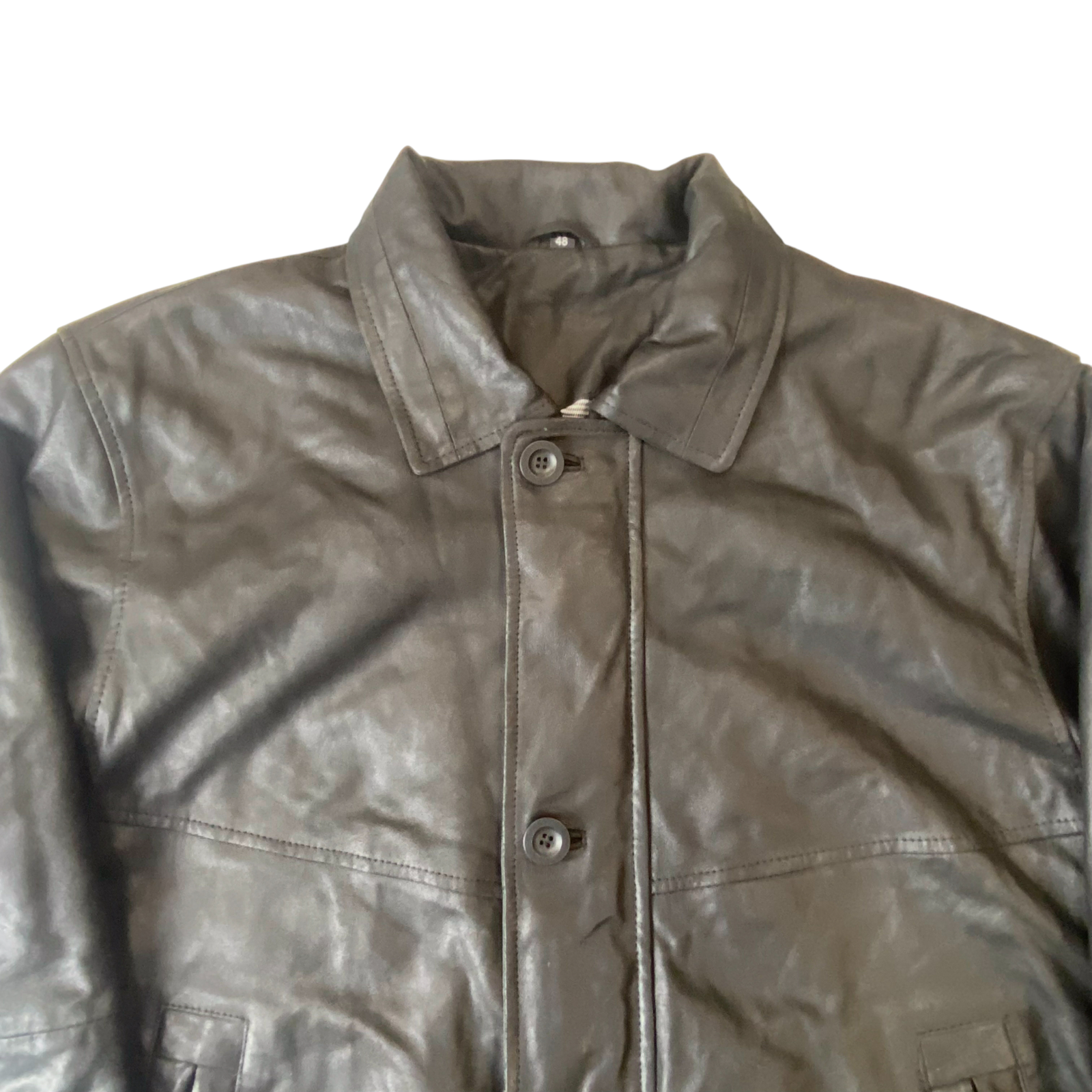 Mens Faux Leather Bomber Jacket Medium Black Long Sleeve Collared Button Front