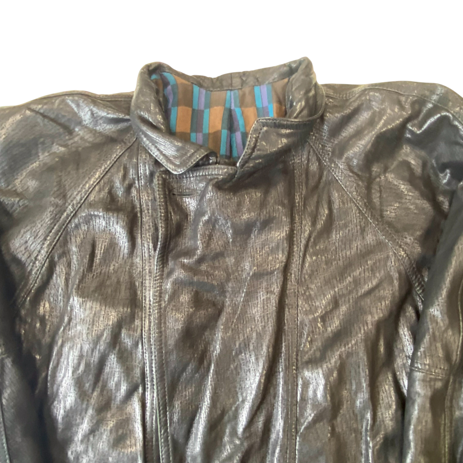 Mens Faux Leather Jacket M Brown Lined Oversized Button Front Elasticated Hem