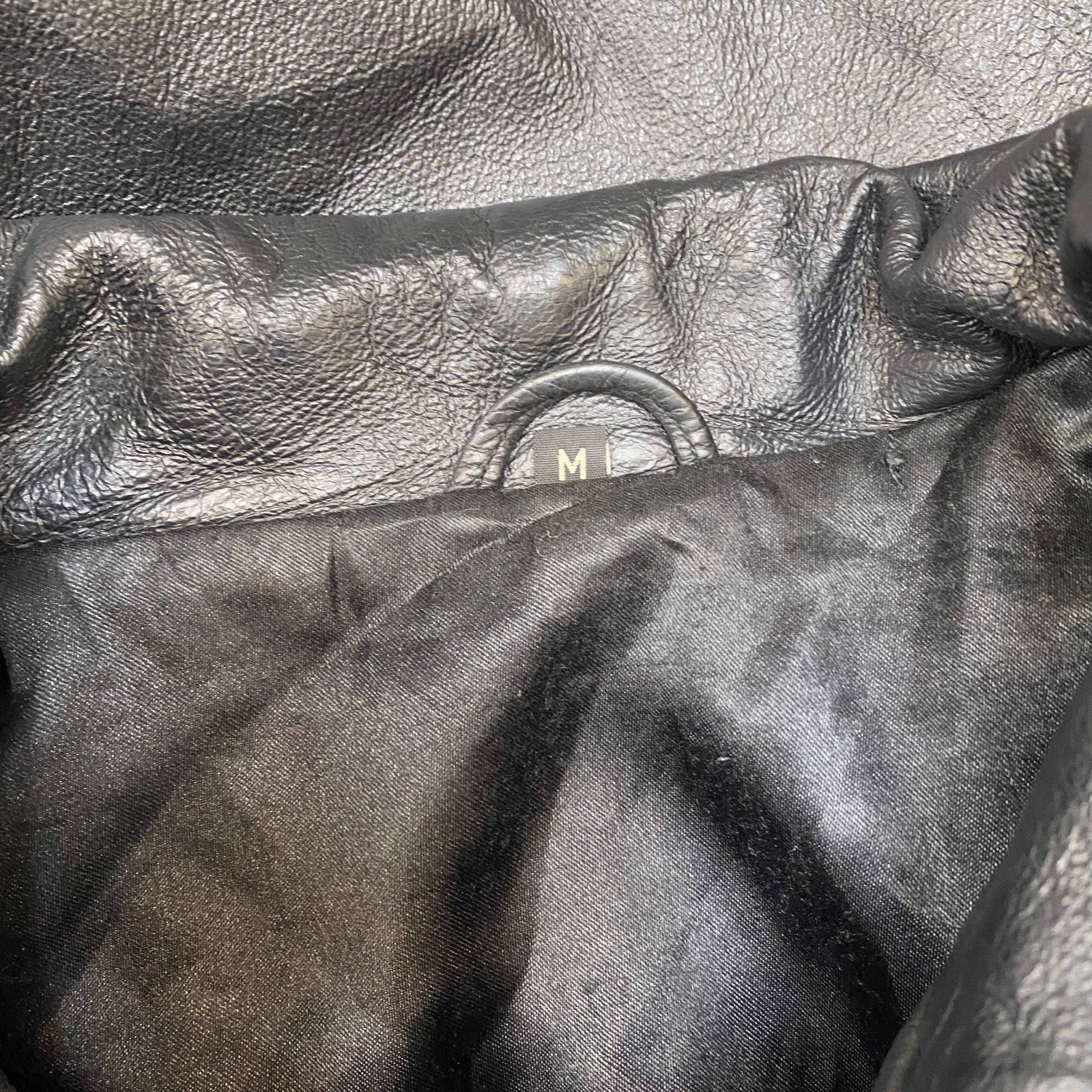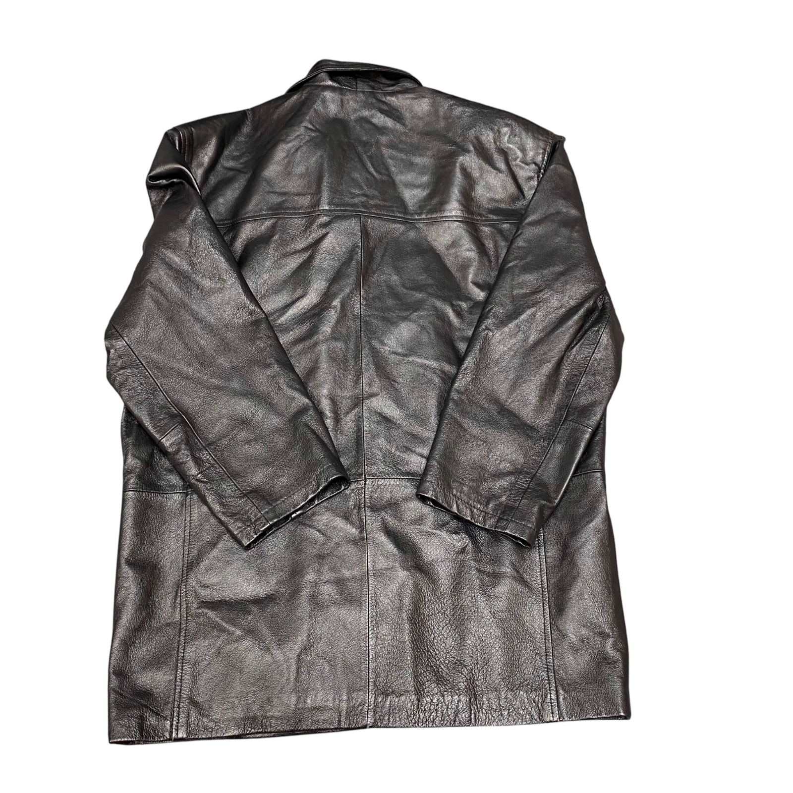 Mens Real Genuine Leather Jacket M Black Lined Long Sleeve Collared Button Front
